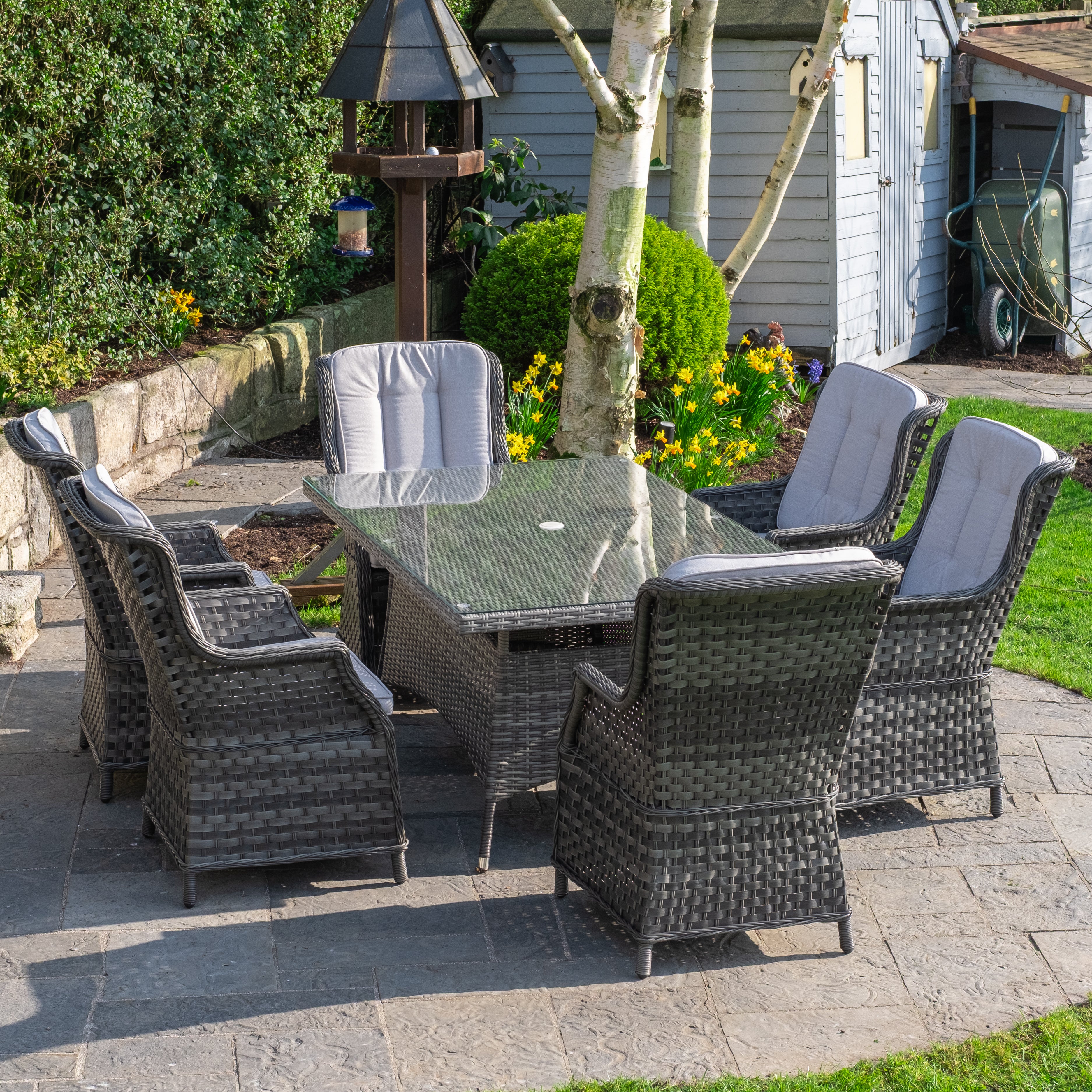 We have a large collection of 6-seater outdoor furniture with various materials, styles and sizes to suit anyone's garden. Weatherproof and of quality construction, all our furniture is backed by a 5-year structural warranty giving you peace of mind. For added longevity, consider adding a cover for your set to keep it looking brand new for years to come.
