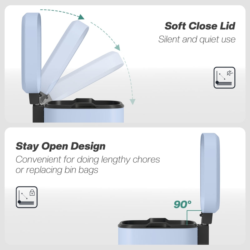 12L Kitchen Bin, Modern Boxy Metal, Light Blue