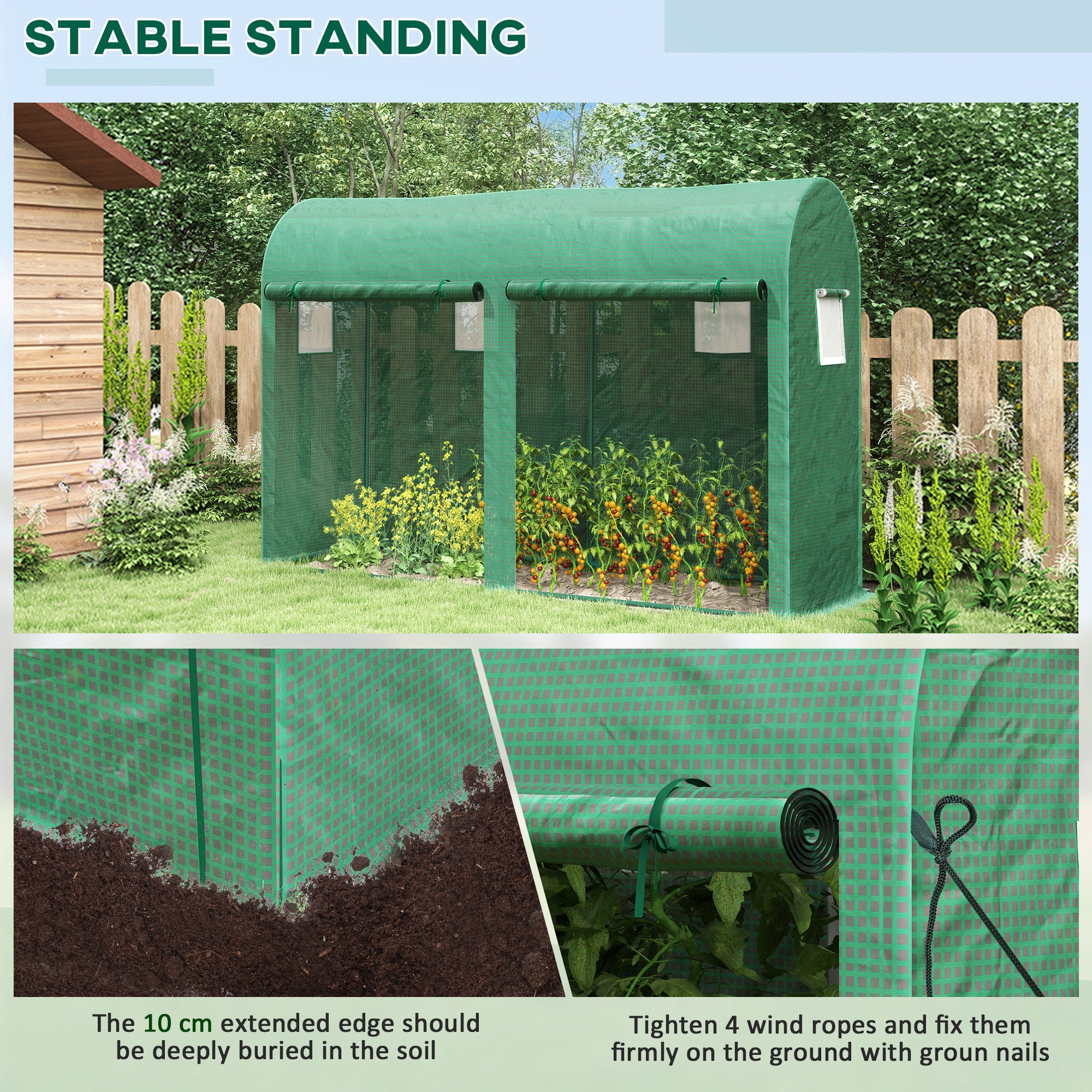 Walk-in Polytunnel Greenhouse, 4 x 3M with Zipped Roll-Up Door and 6 Mesh Windows, Tent