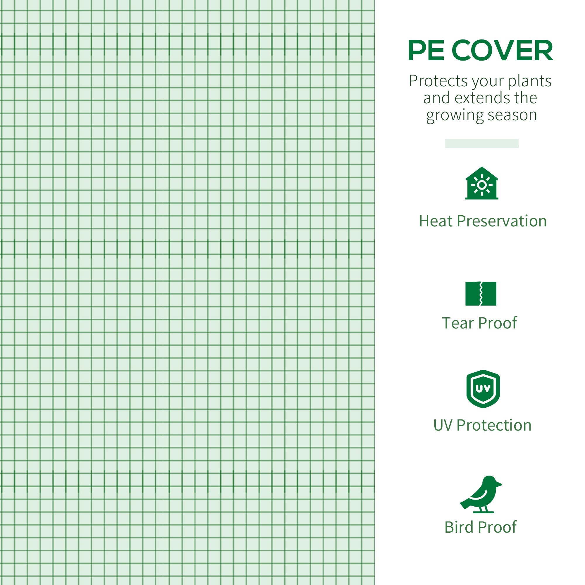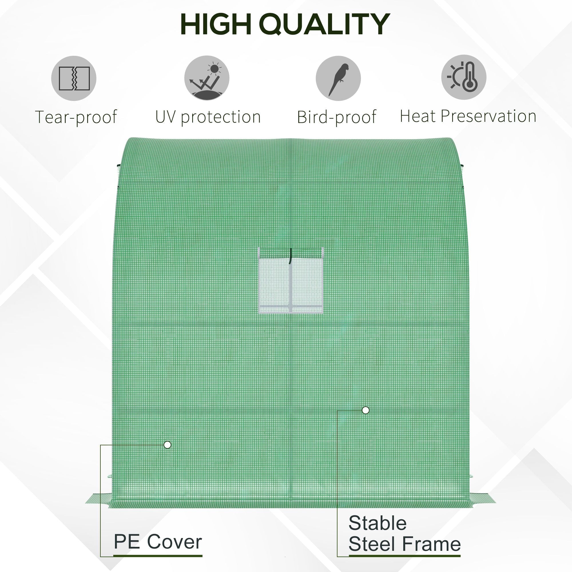 Walk-in Greenhouse, Double Doors & 4 Windows, PE Cover, Green