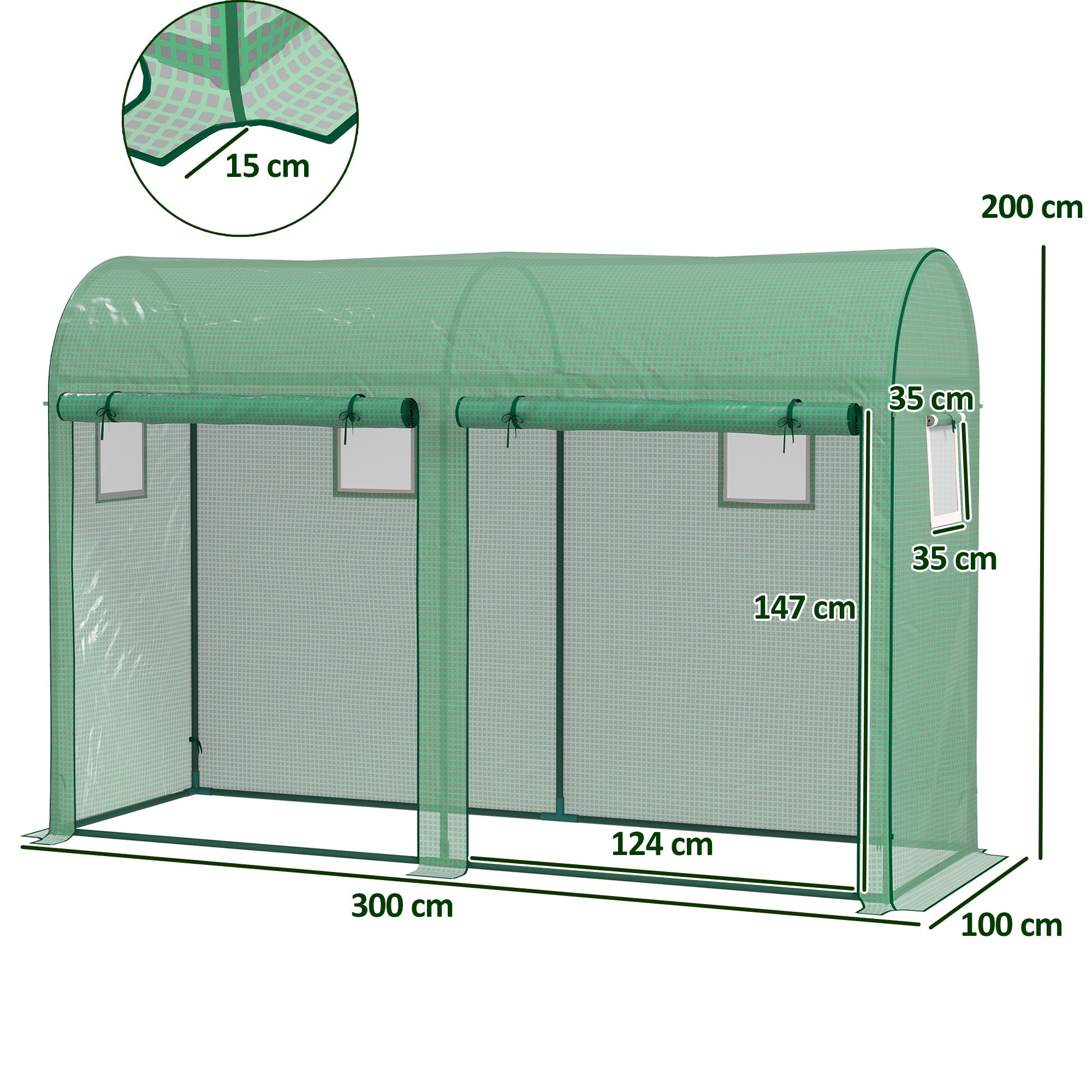 Walk in Polytunnel Greenhouse Roll-up Window Door 1.8x1.8x2m Green