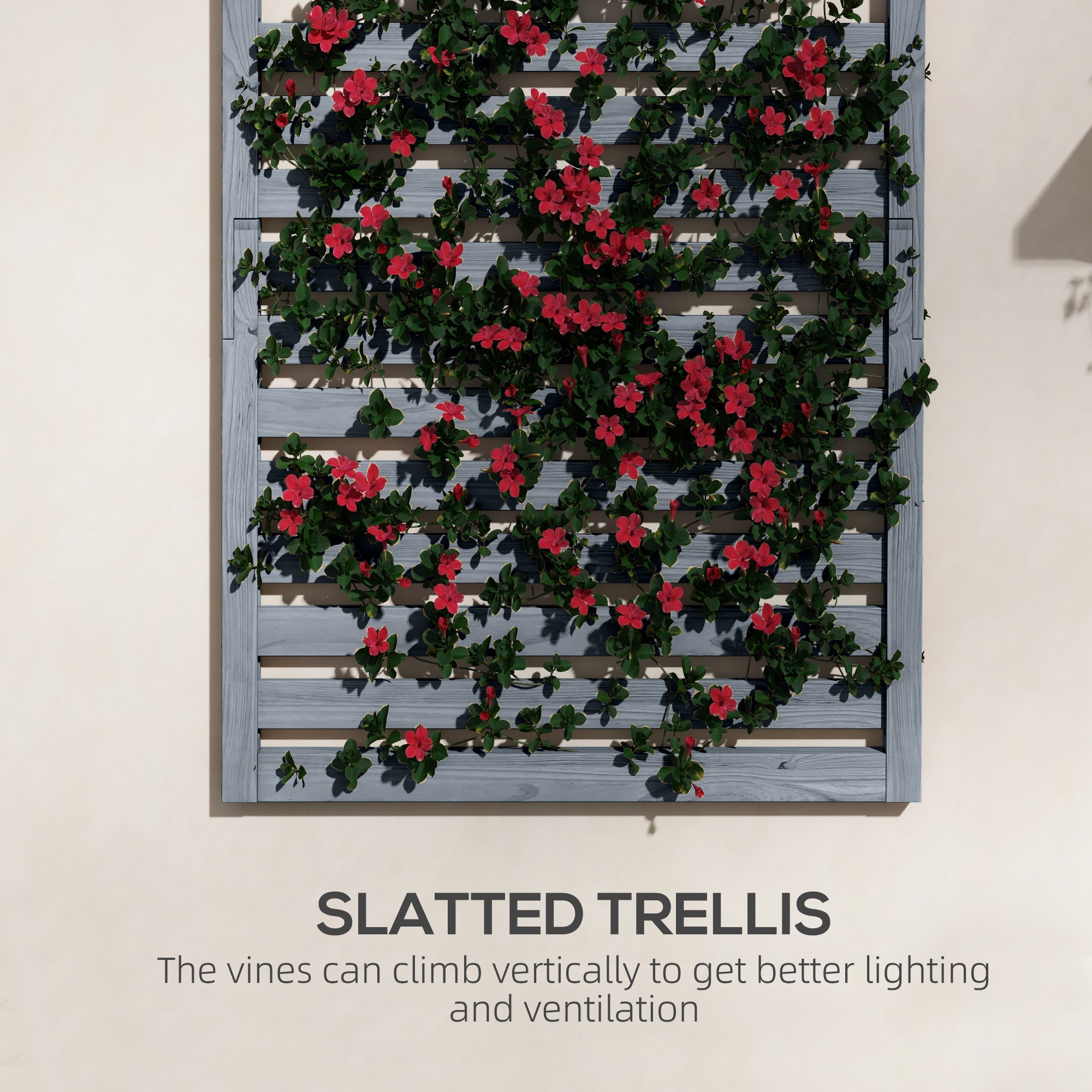 Wall Mounted Plant Stands Set of 2, Shelves Slatted Trellis, Fir Wood Grey