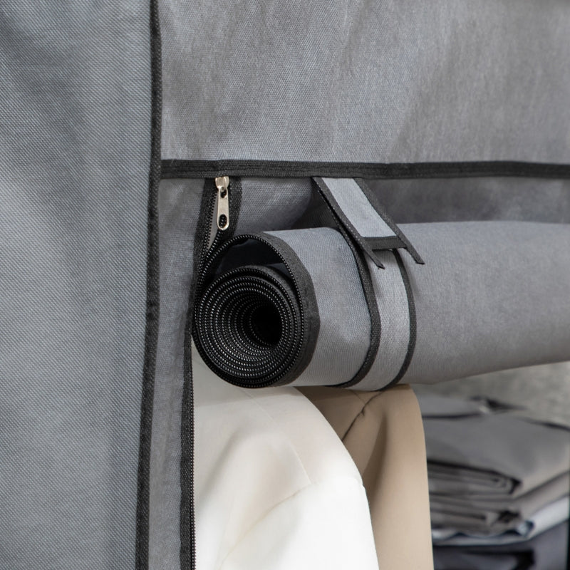 Wardrobe with Six Shelves and Hanging Rail, Fabric - Dark Grey