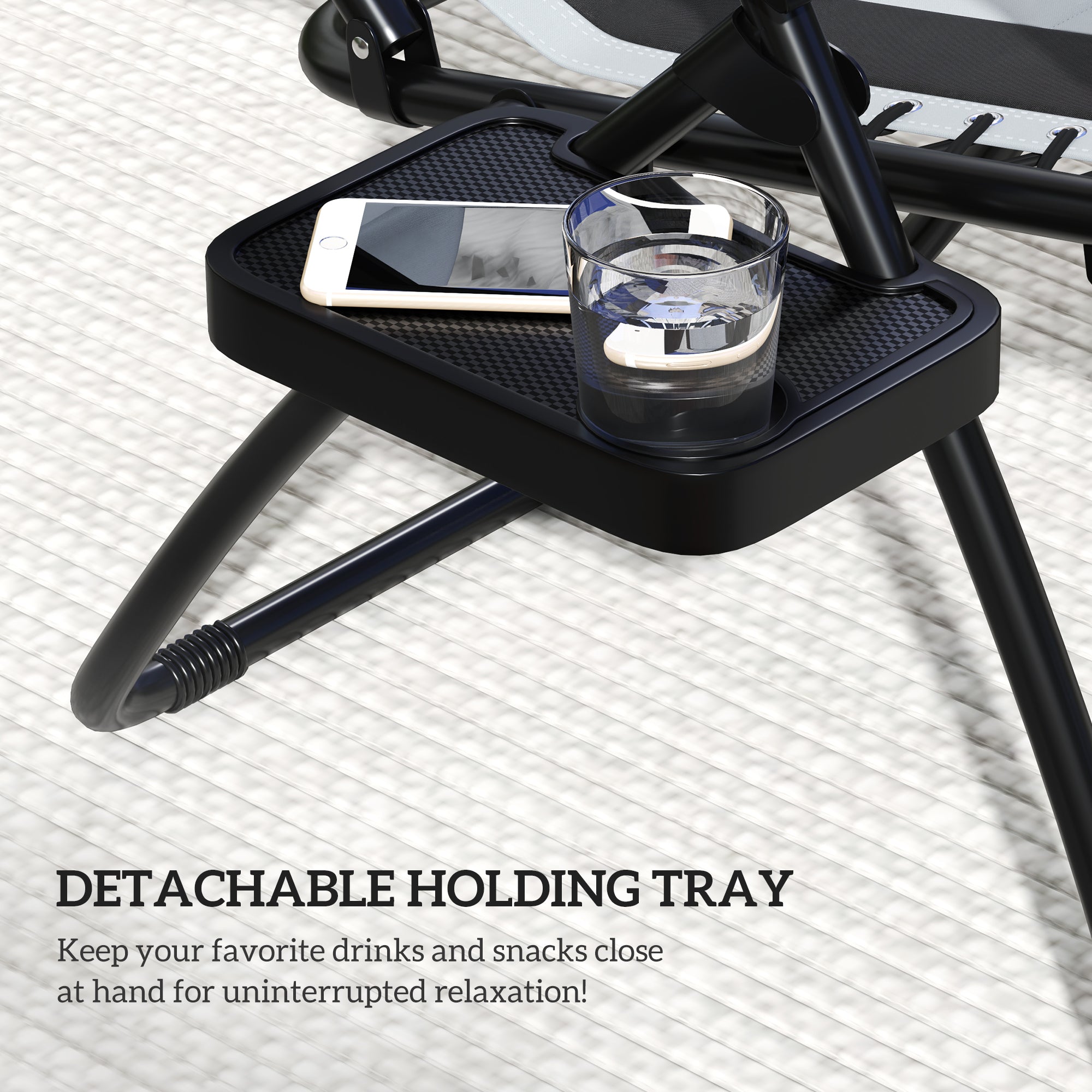 Zero Gravity Lounger Chair, Folding Reclining Padded Seat Cup Holder, Light Grey