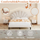 4ft6 Double Upholstered Velvet Bed Frame, Adjustable Chic Petal Headboard, Beige
