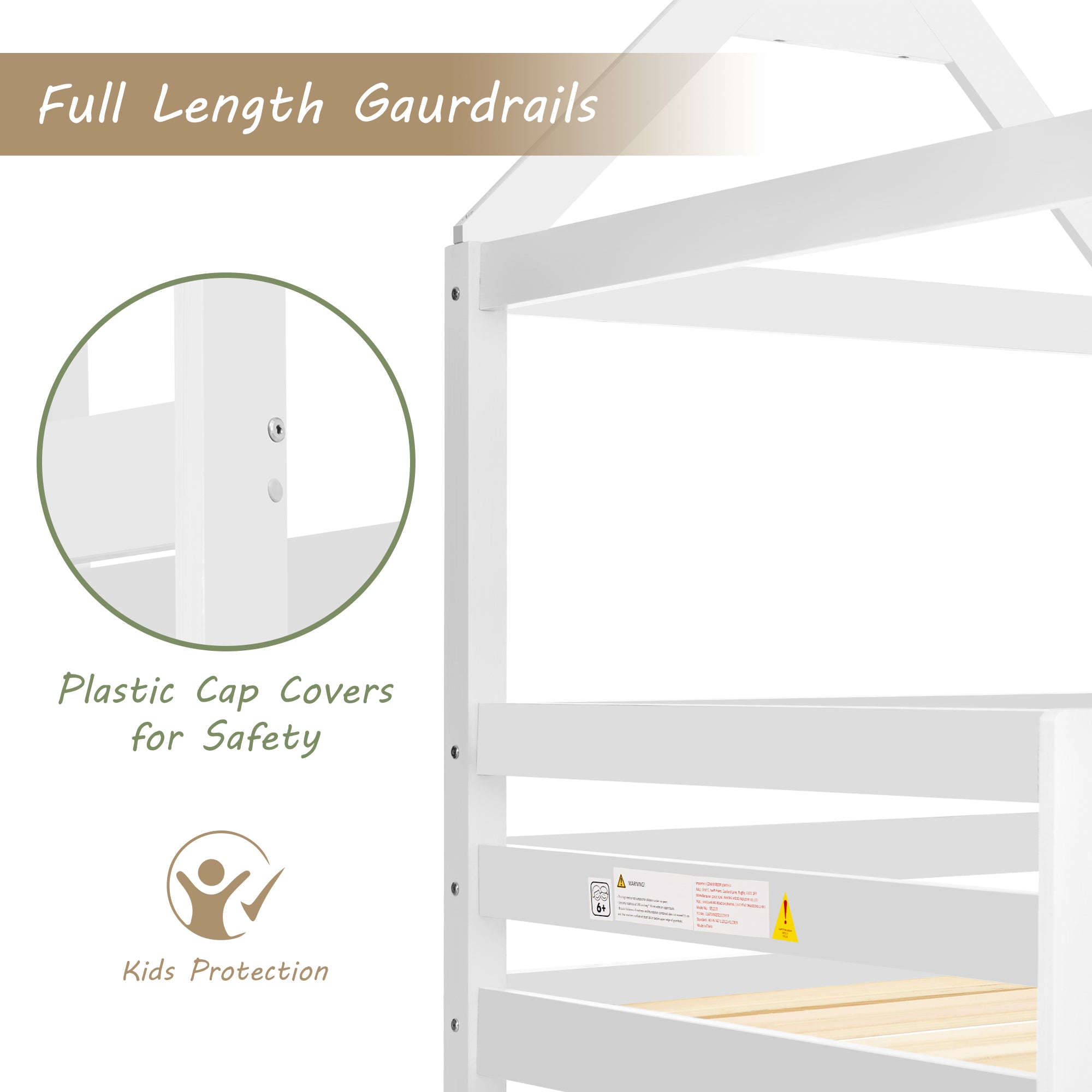 Bunk Bed, Children Cabin Bed, Single Bed for Kids, Twin Sleeper, 3FT, Solid Pine Wood, White