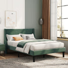 Double Bed with Winged Headboard, Dark Green Velvet, Wood Slat Support