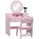 Kids Dressing Table Set Stool, Mirror, and Storage Drawers, MDF