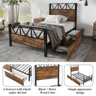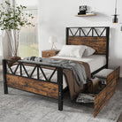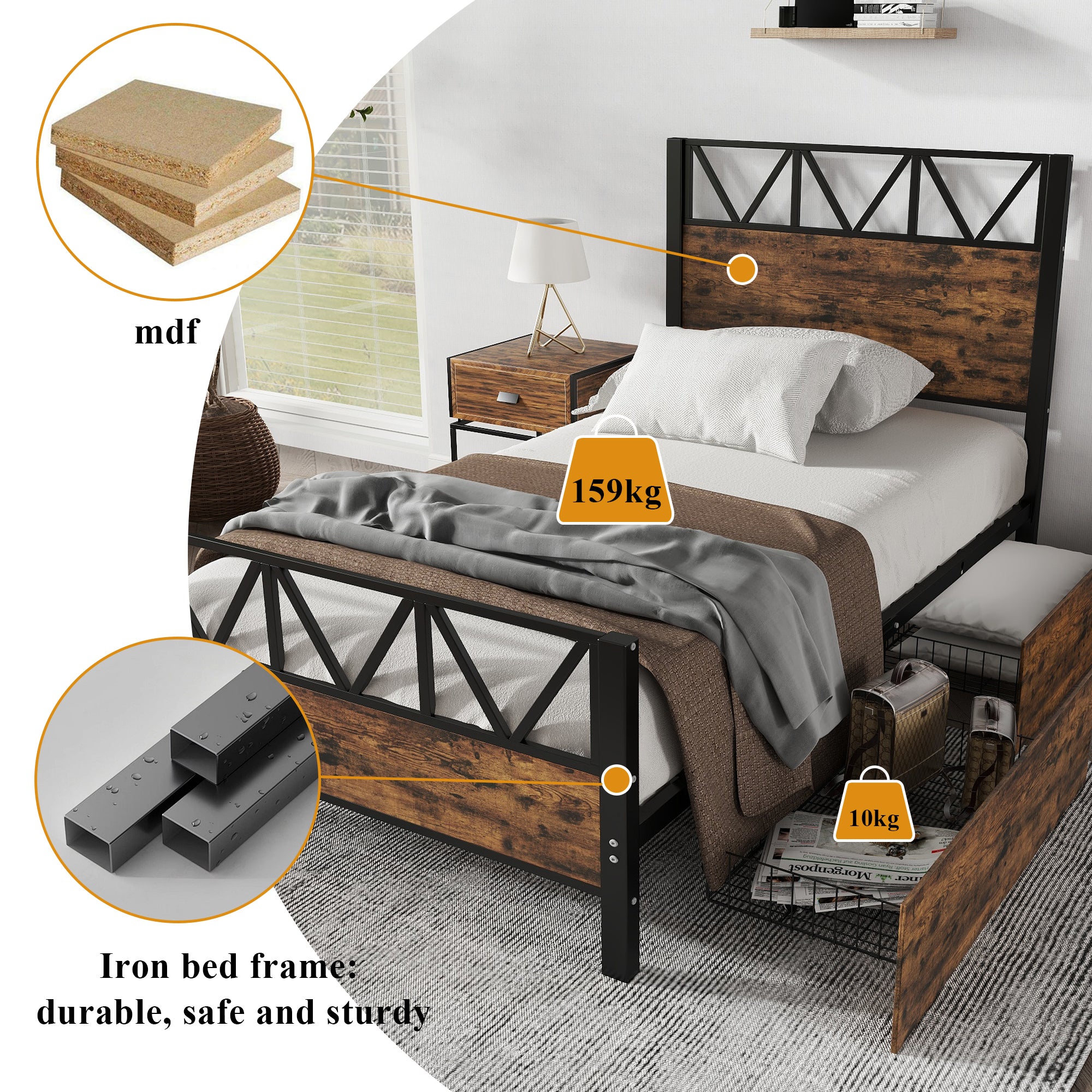Metal Bed, 3FT Single with 2 Drawers, Black+Wood Color