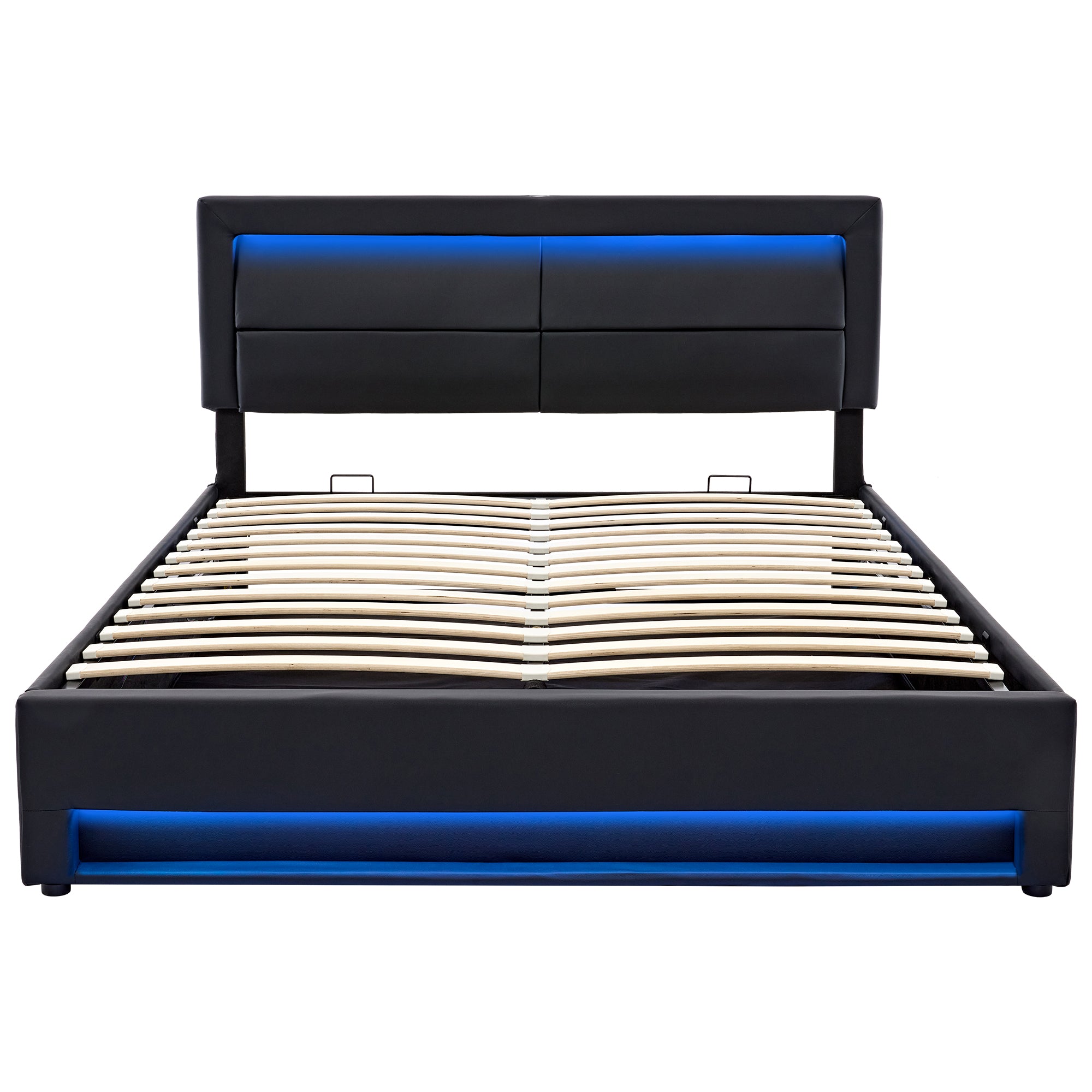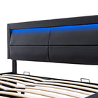 N606P203963S Multifunctional USB LED Storage Adjustable Headboard Bed Black PU