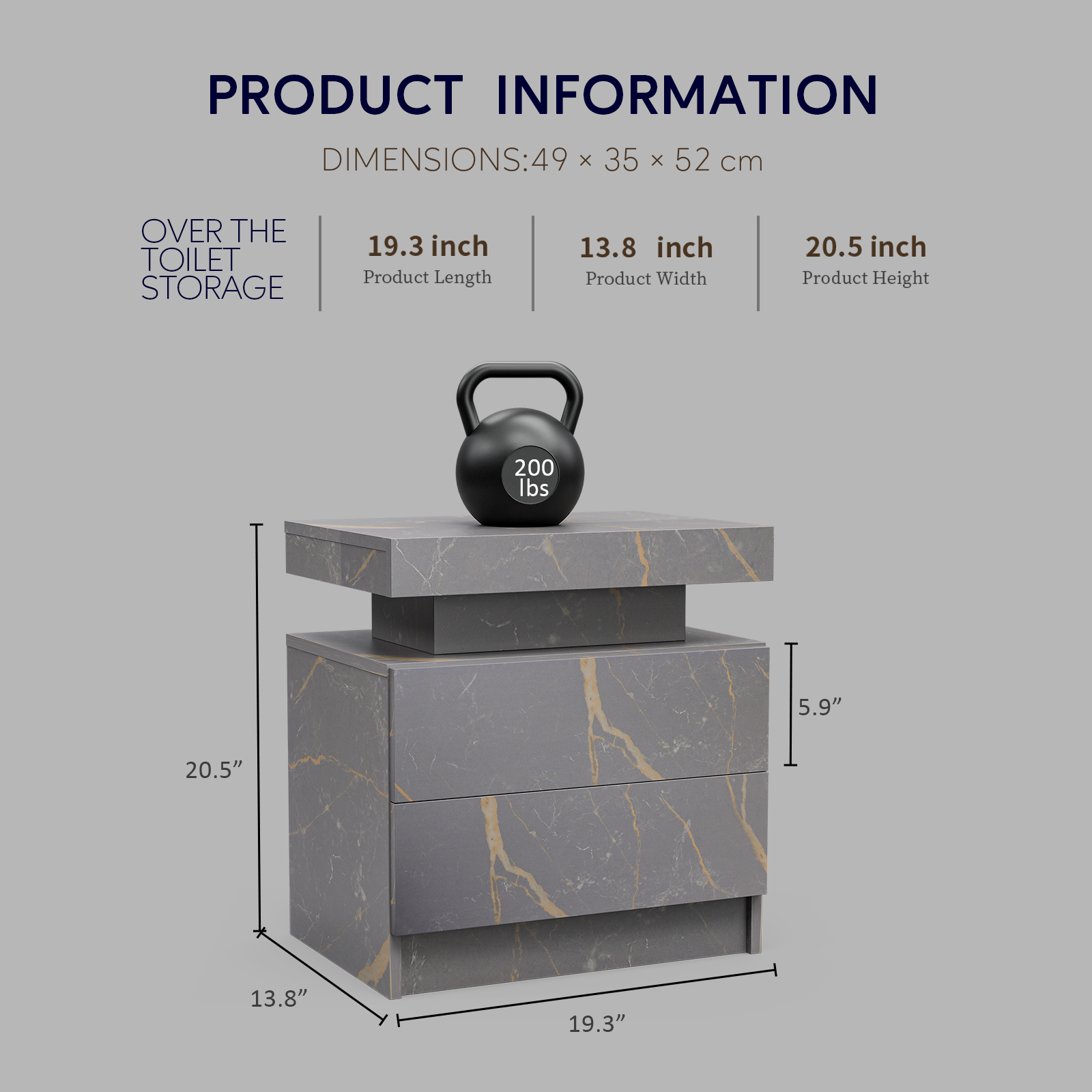 Nightstand LED Bedside Table Cabinet Lights Modern End Side with 2 Drawers for Bedroom (Grey Gold)