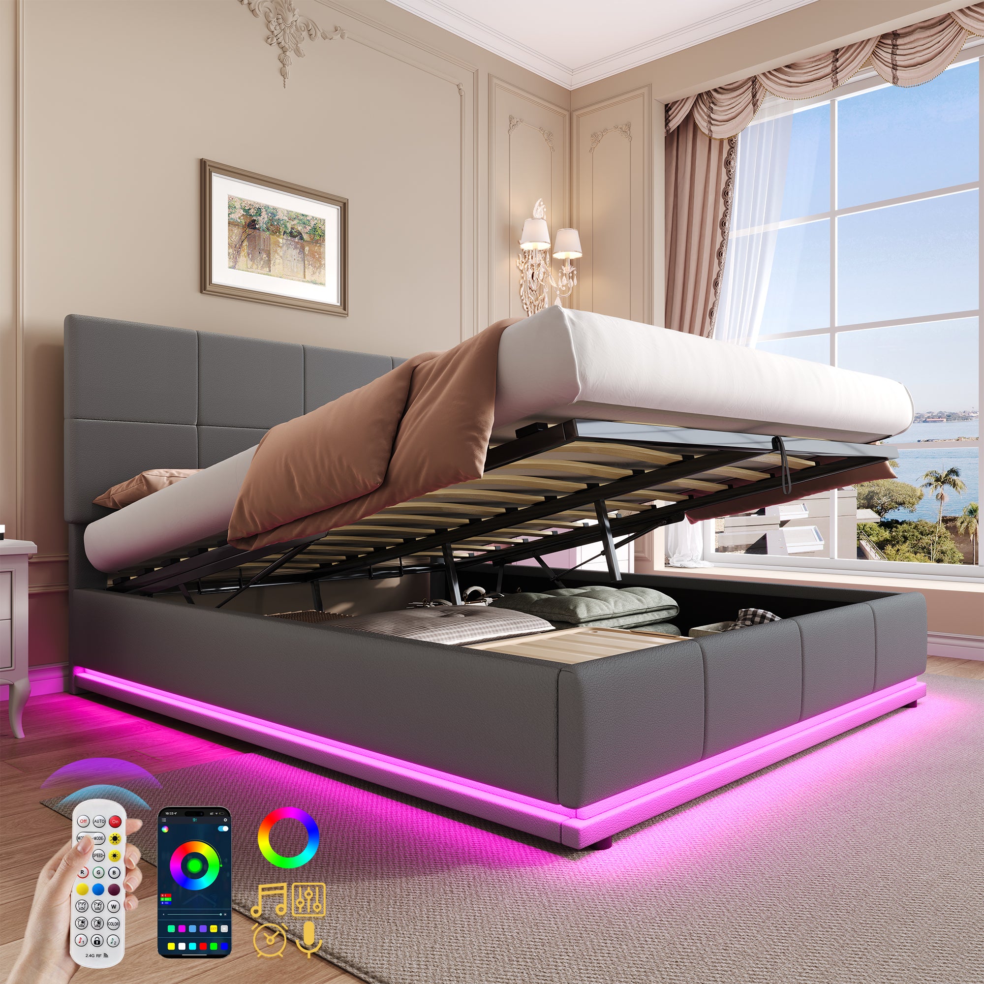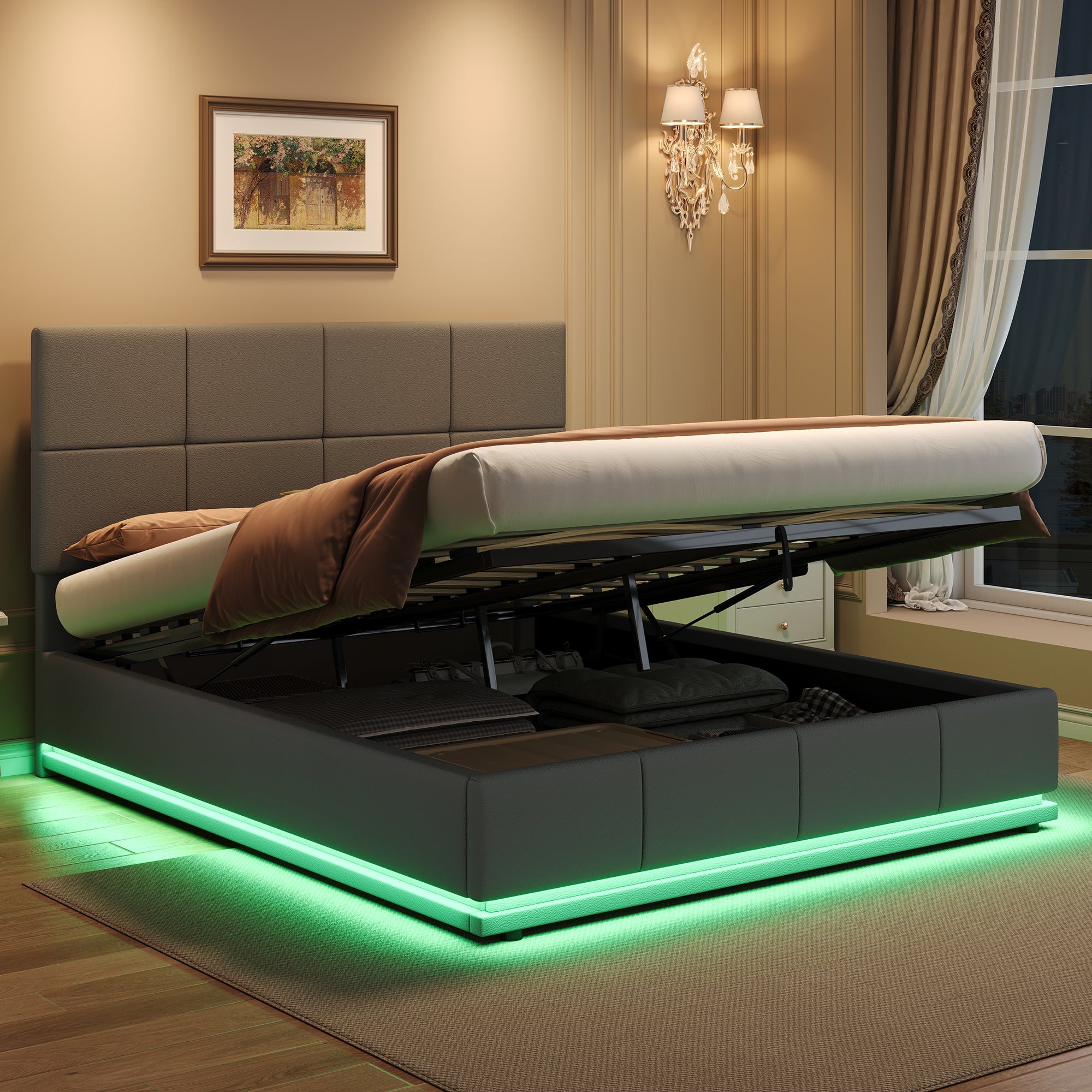 Special Features: Ample hydraulic storage space, Surrounding RGB LED lighting strip, Adjustable square tufted headboard