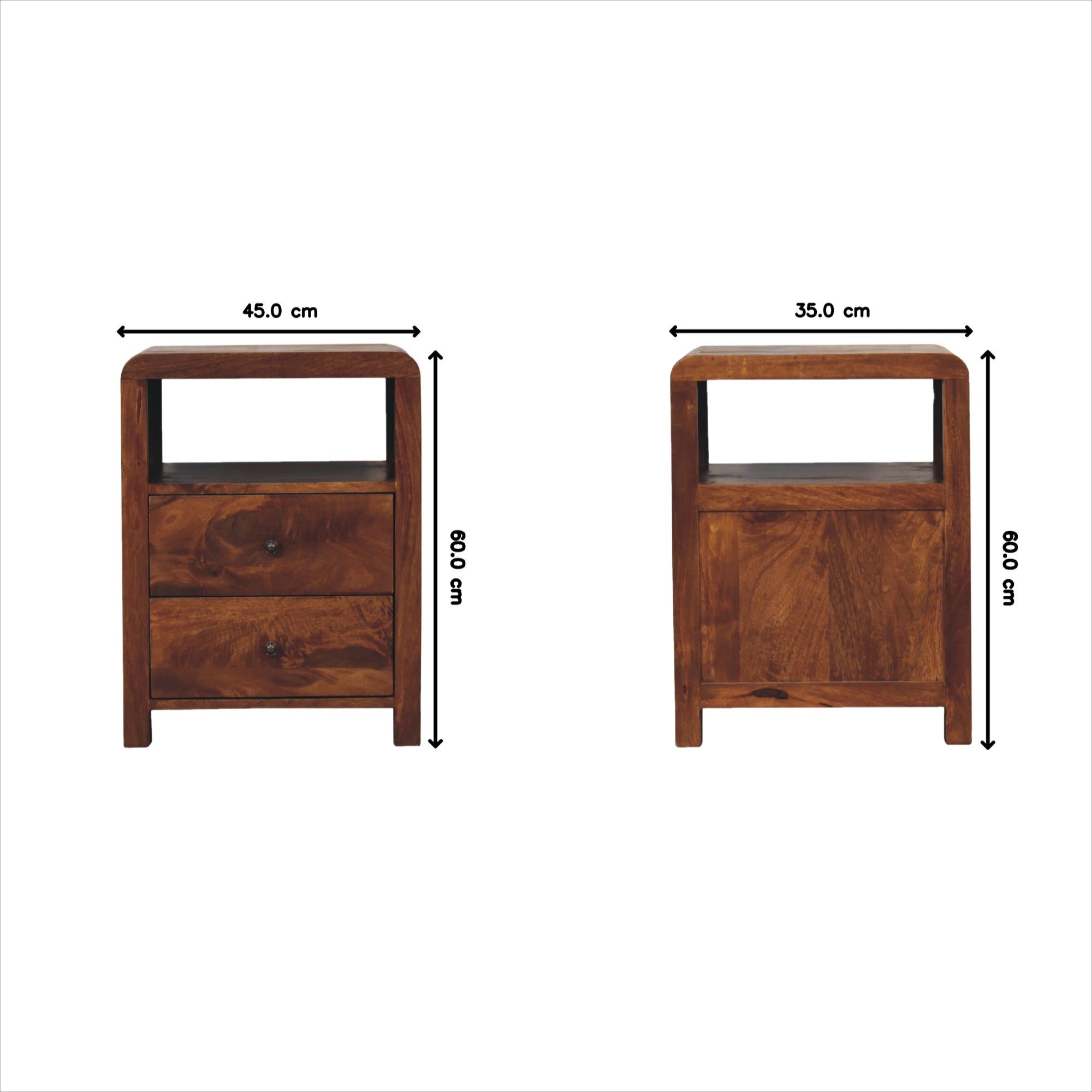 Solid Wood Aspen Bedside: 2 Drawers, 1 Open Slot - Dark Brown