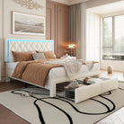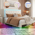 Upholstered Bed, 4ft6 Double 135x190cm, Comfortable Headboard, 2 Drawers, 16-Color LED-Light Strips, PU+Iron, Beige