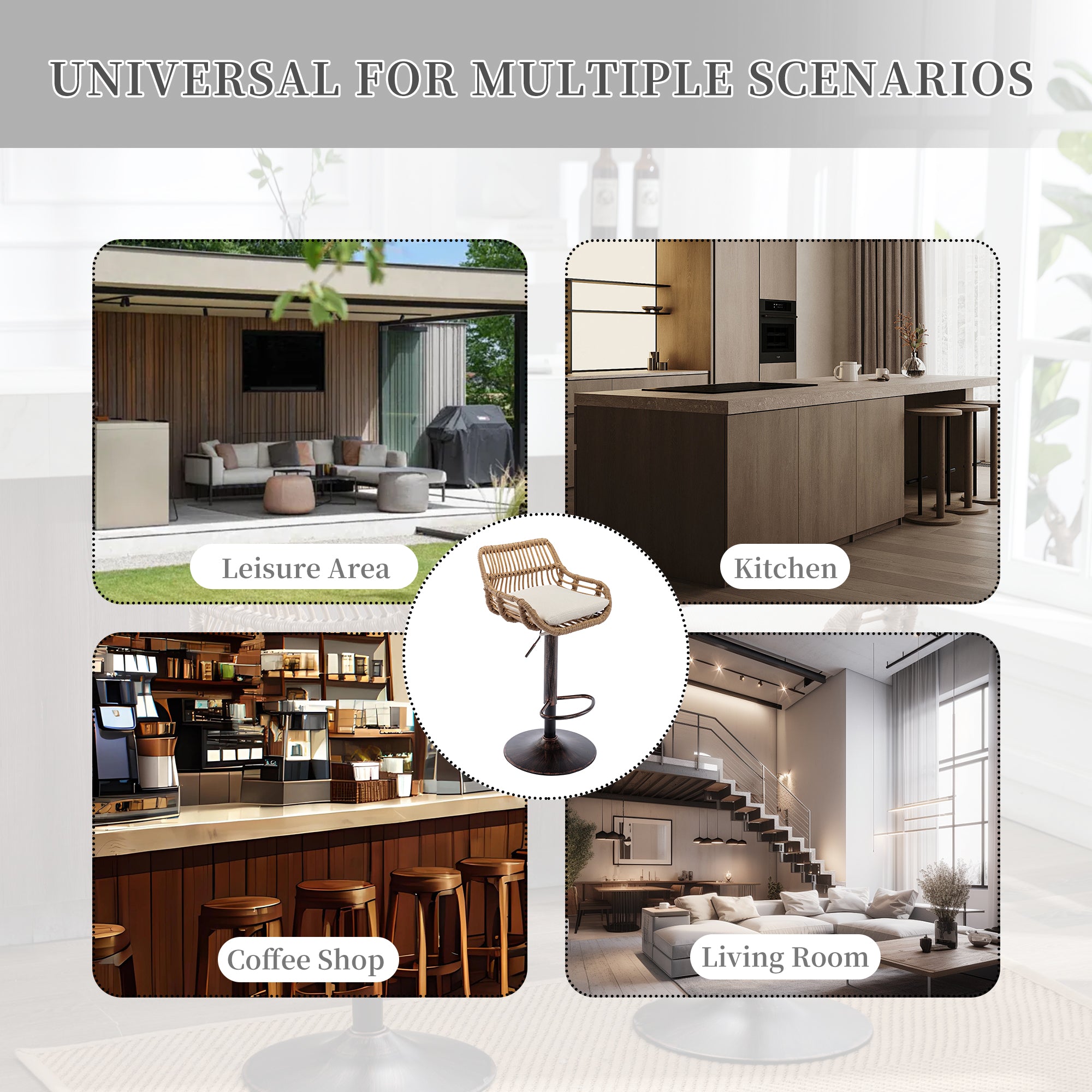 GOMYWAY 2 PCS Modern Swivel Bar Stools Height Adjustable, Wicker Beige