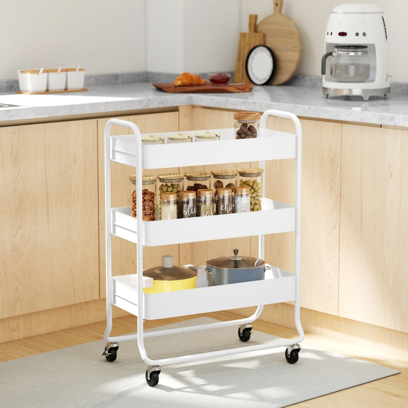 3-Tier Storage Trolley Utility Cart Mesh Baskets White Metal