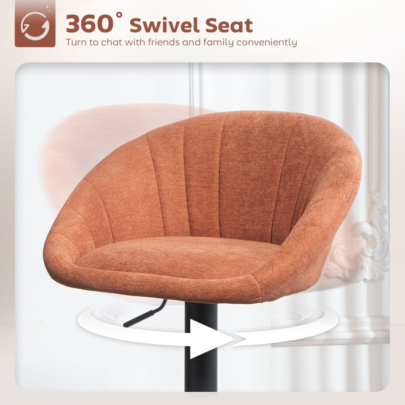Set of Two Relaxed Tub Bar Stools Swivel Adjustable Height, Orange
