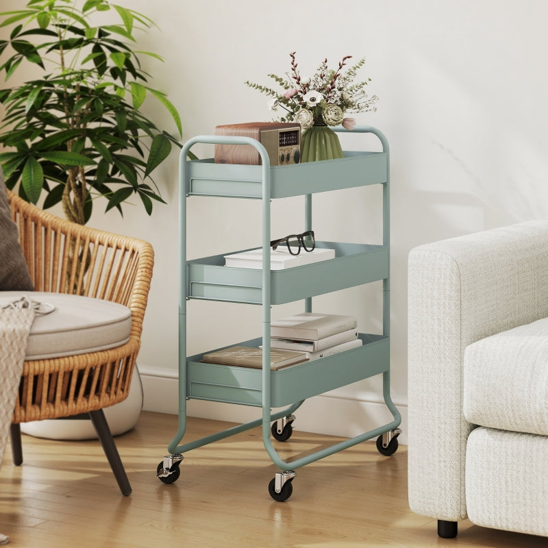3-Tier Storage Trolley on Wheels, Rolling Utility Cart with Mesh Baskets, Metal, Light Green