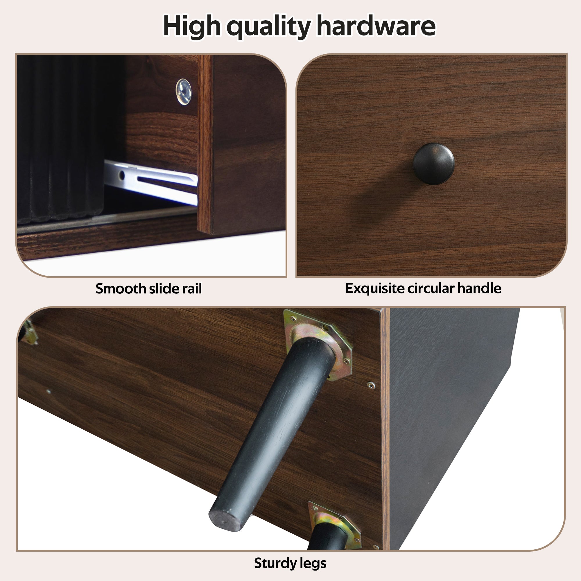 Dining Table Round Kitchen Table Black Legs Anti-slip Foot Pads 90x76cm Rustic Brown
