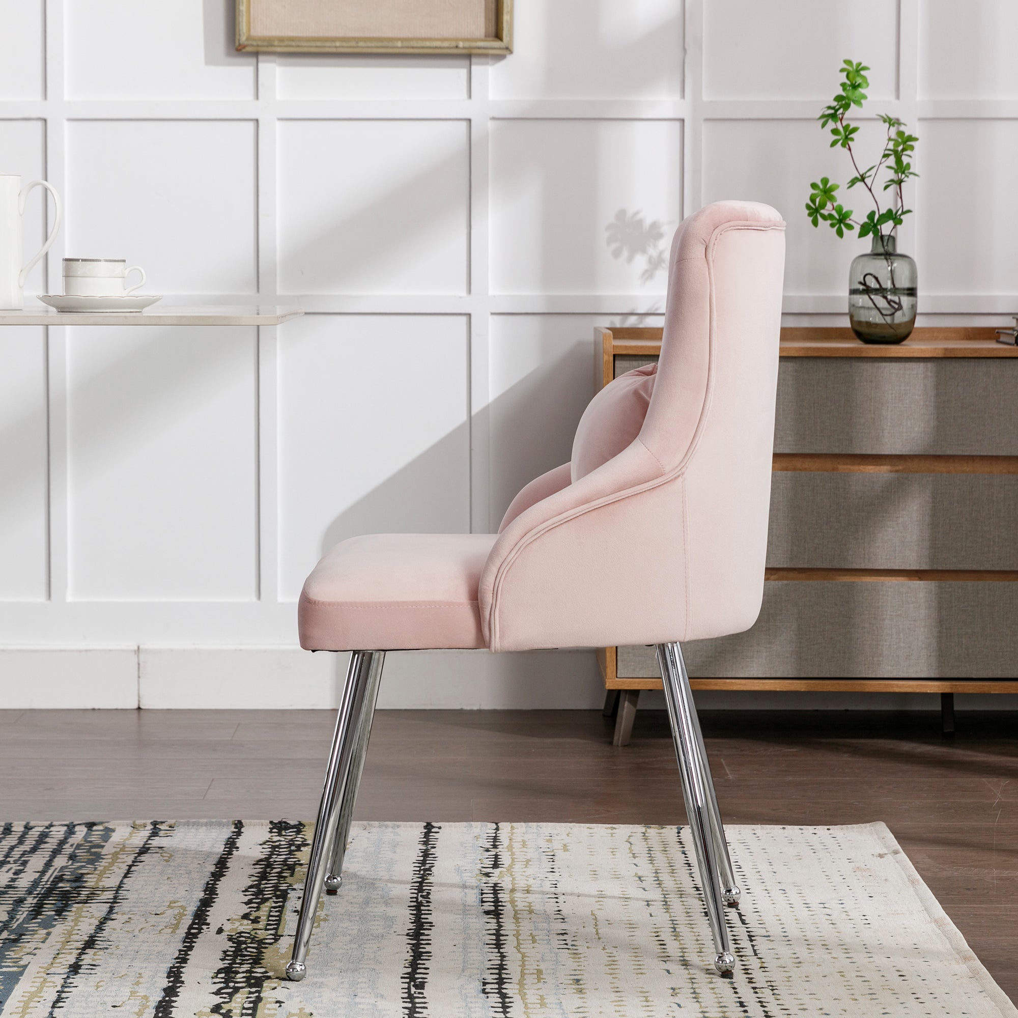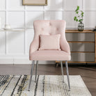 Button Pattern Dining Chair, Upholstered Armchair with Metal Legs, Pink