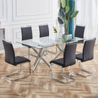 Cantilever Chair, Chrome-plated Metal Frame, Black Imitation Leather (Set, 4 Pieces)