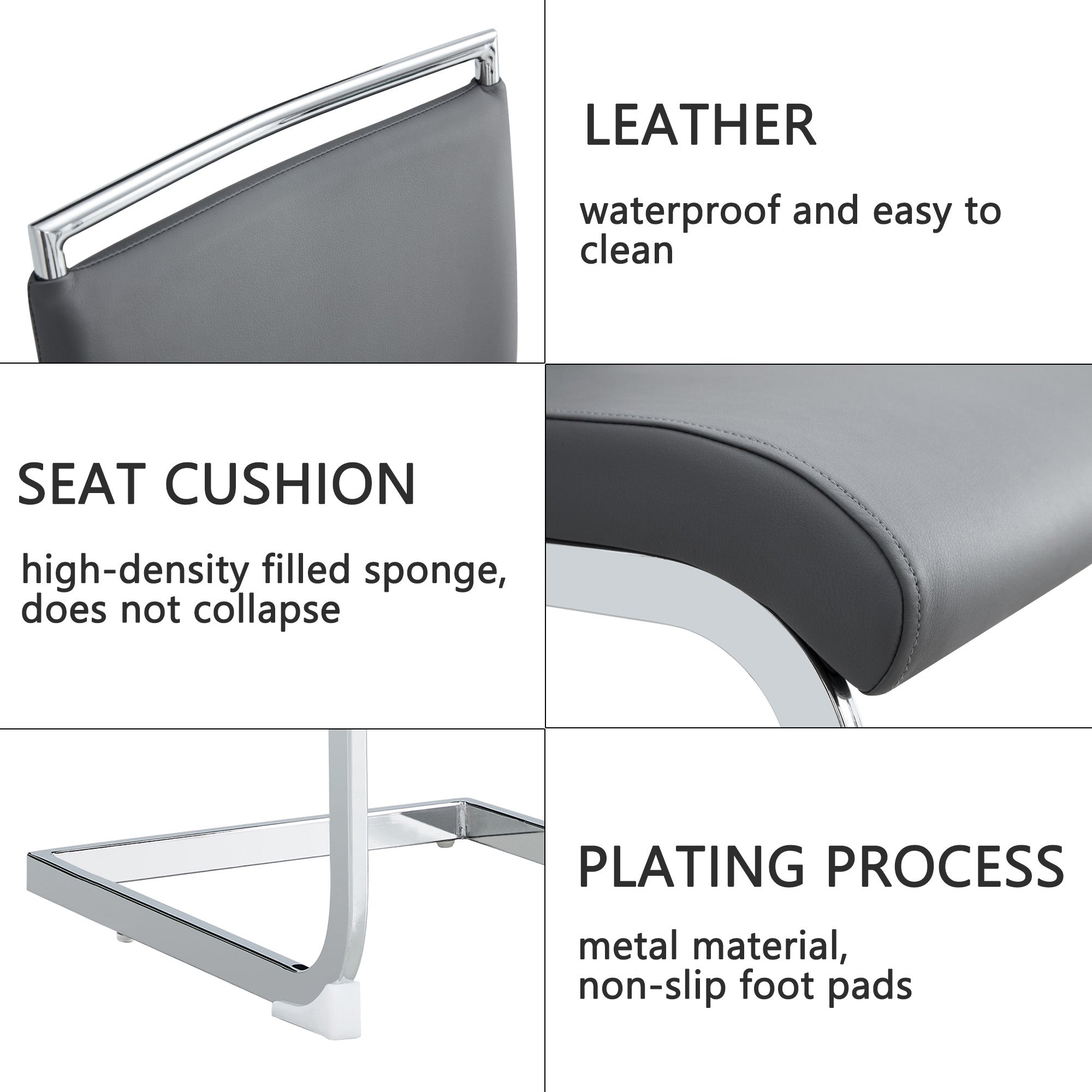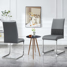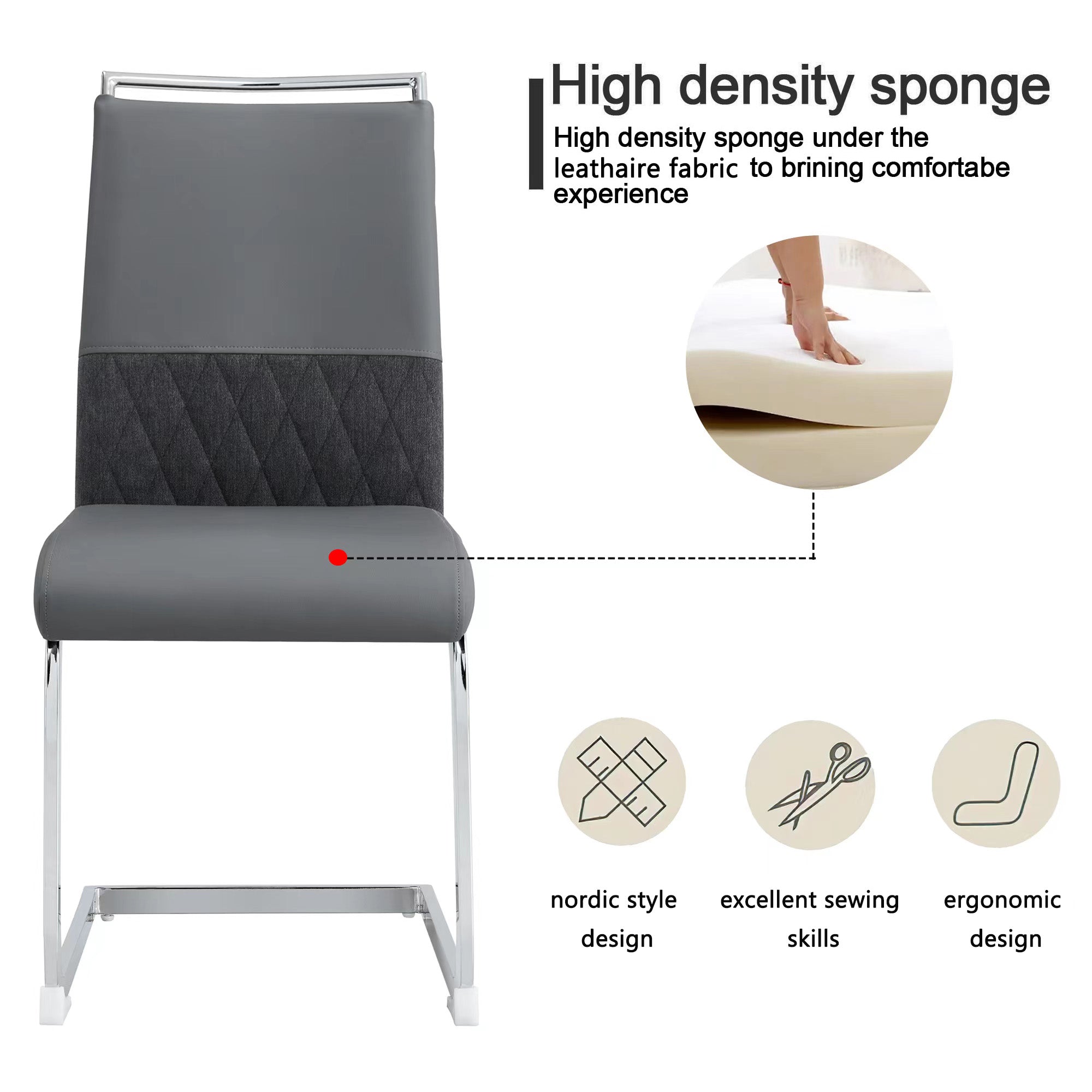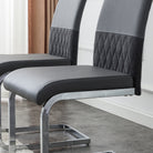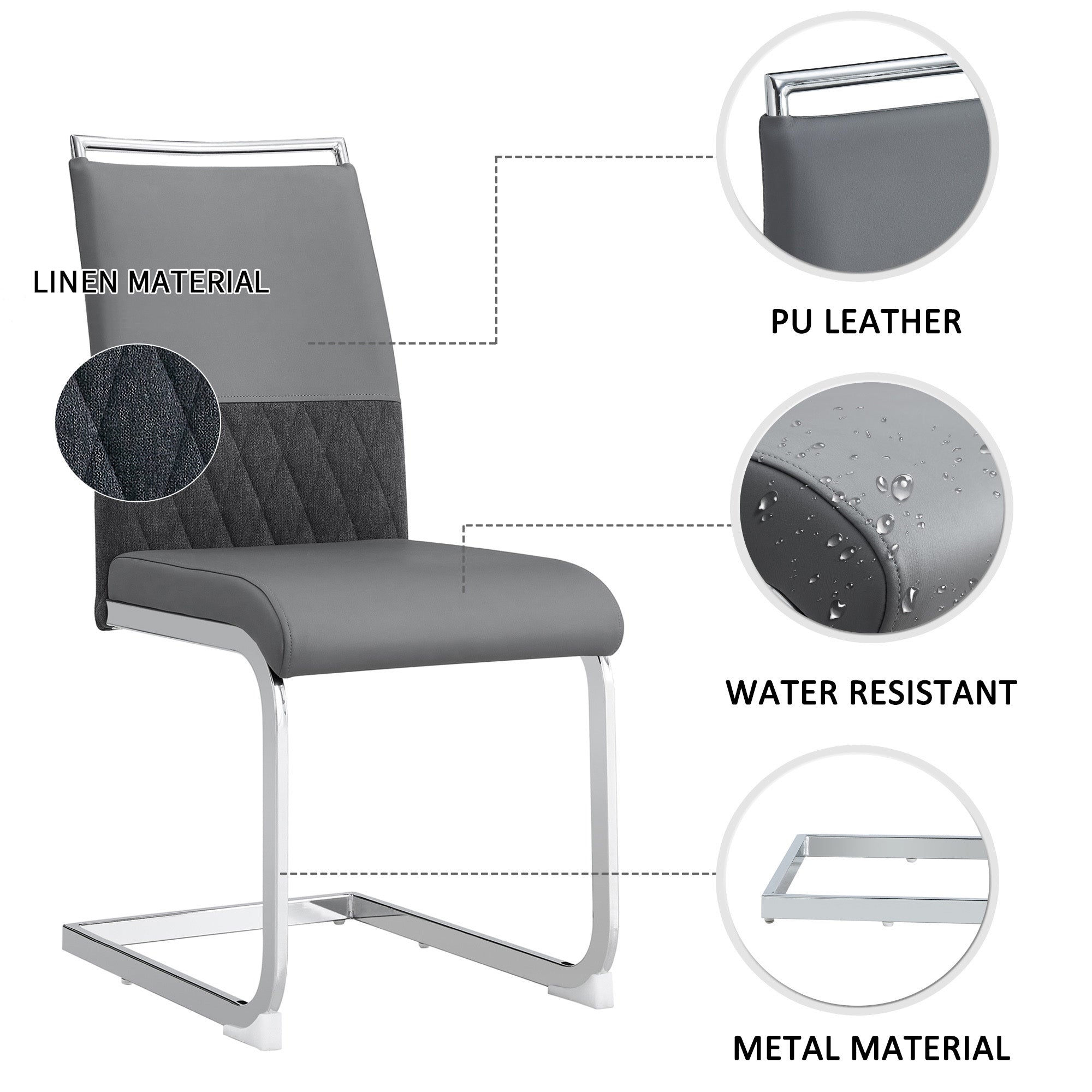 Modern Dining Chairs Set of 2, High Back Padded Side Chair with Horizontal Stripes Backrest, Gray PU Faux Leather and Linen