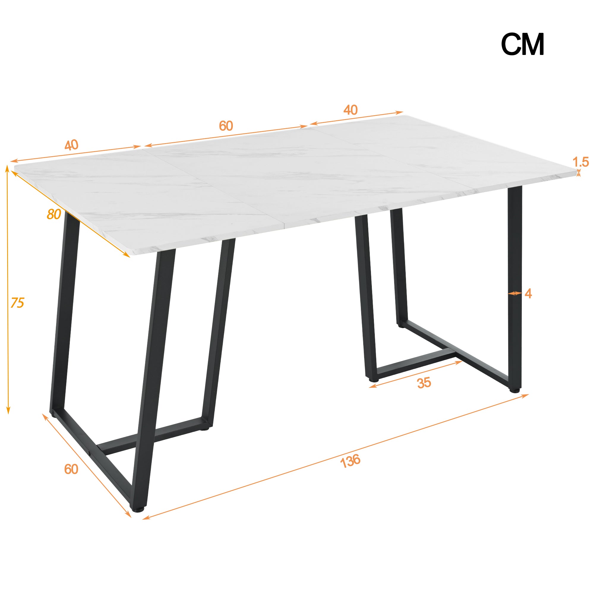 * Material: Metal, MDF**MDF table top with classic marble pattern**