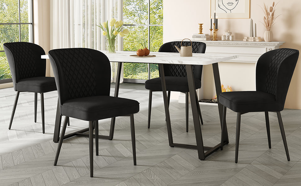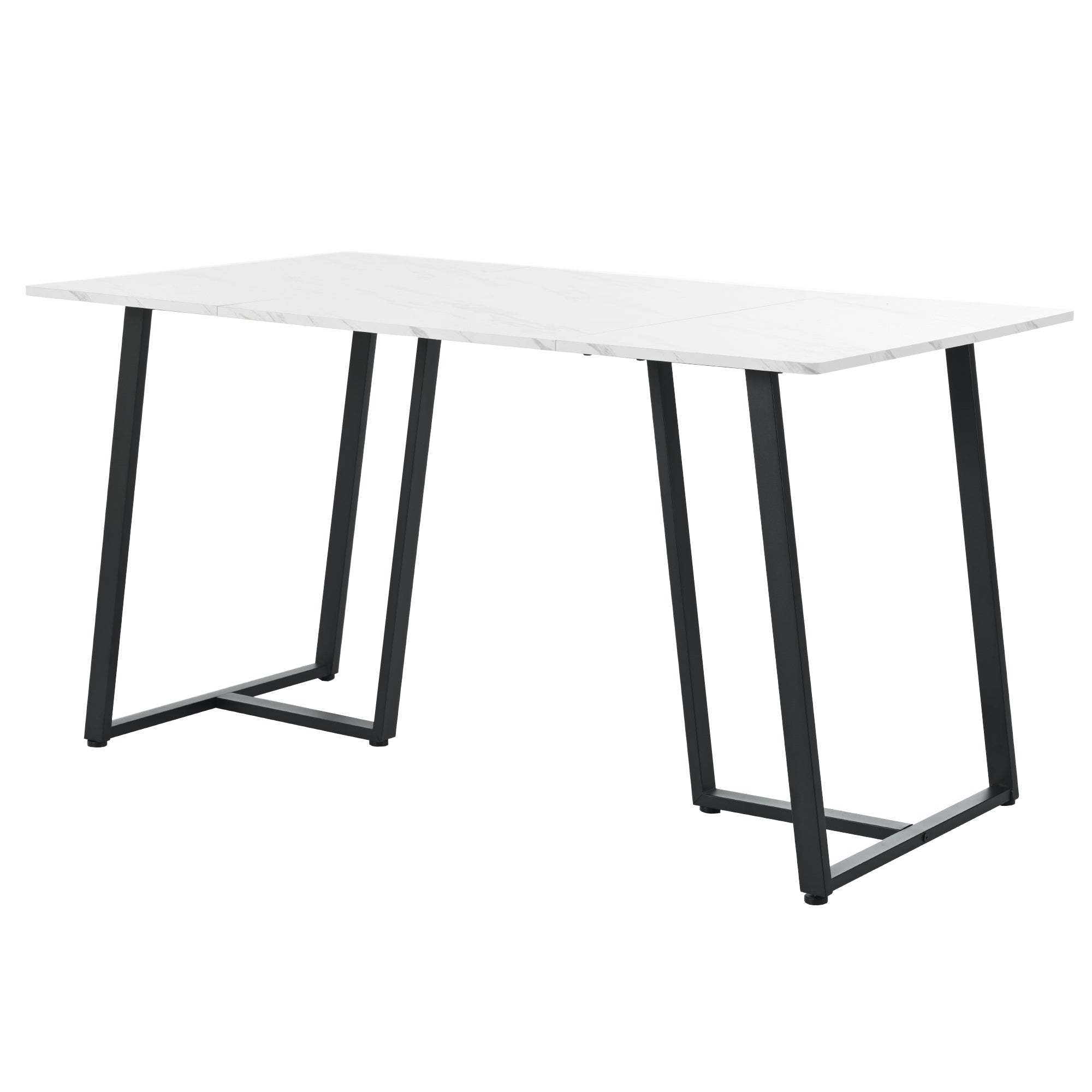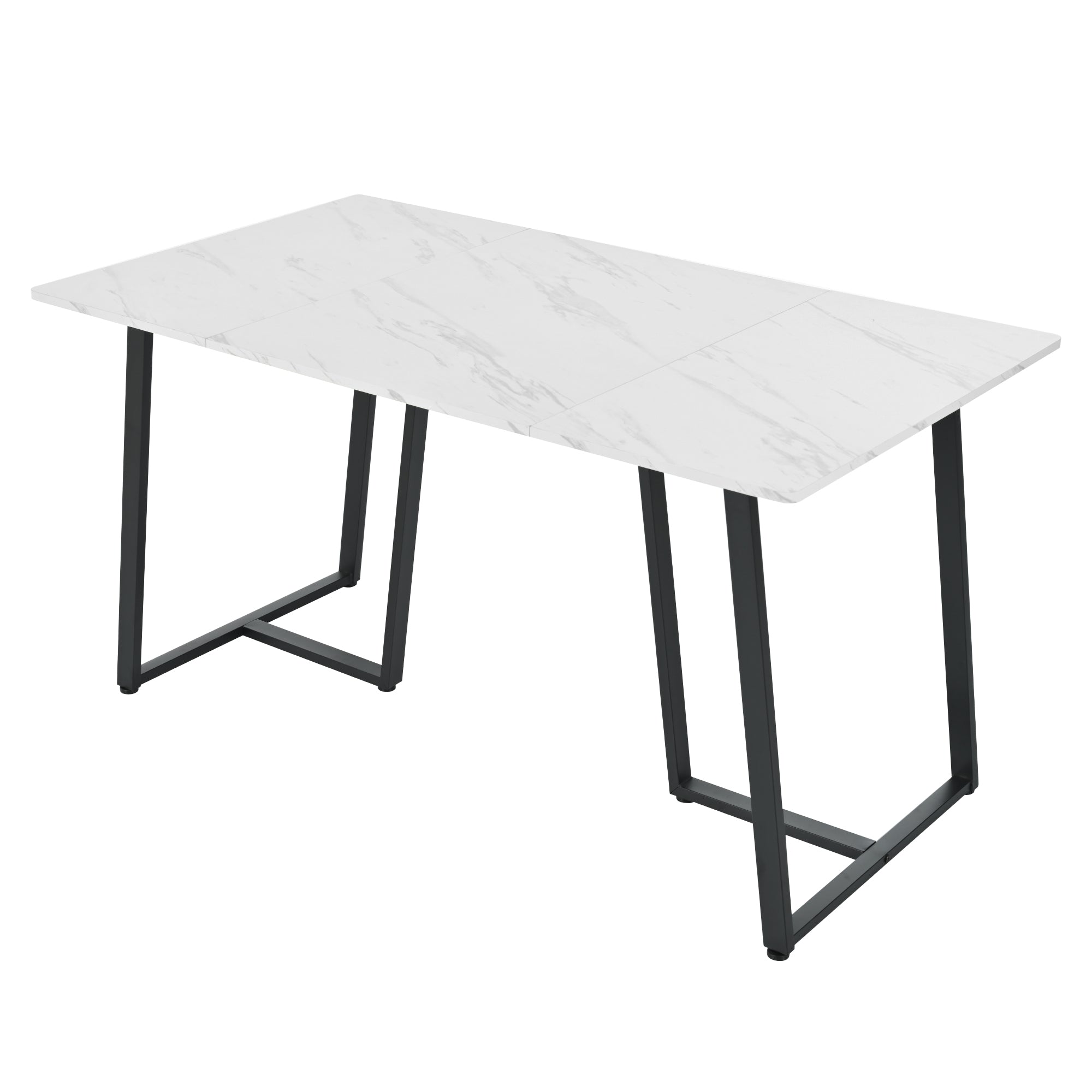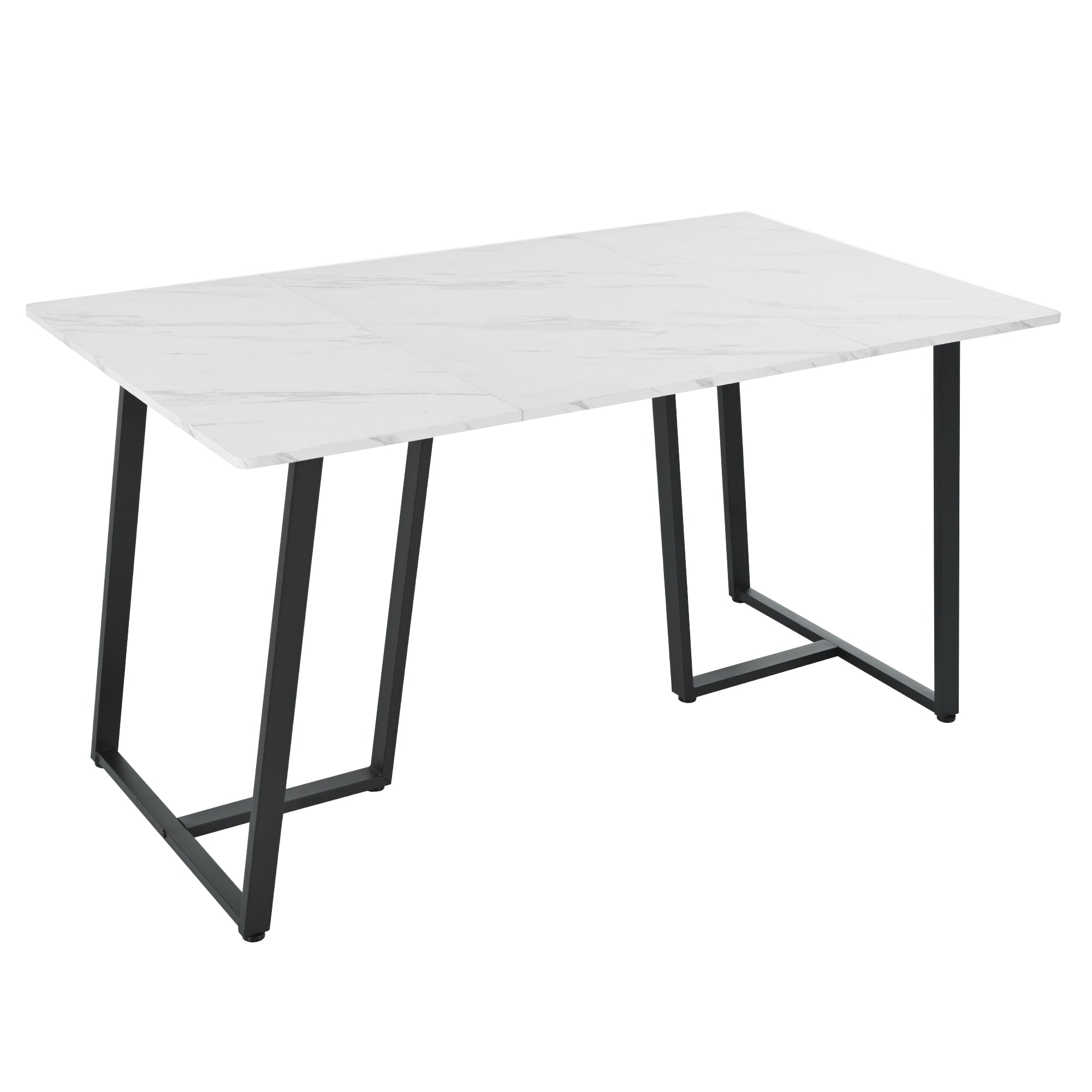 Modern Kitchen Dining Table, Metal Frame, Marble Pattern, White/Black