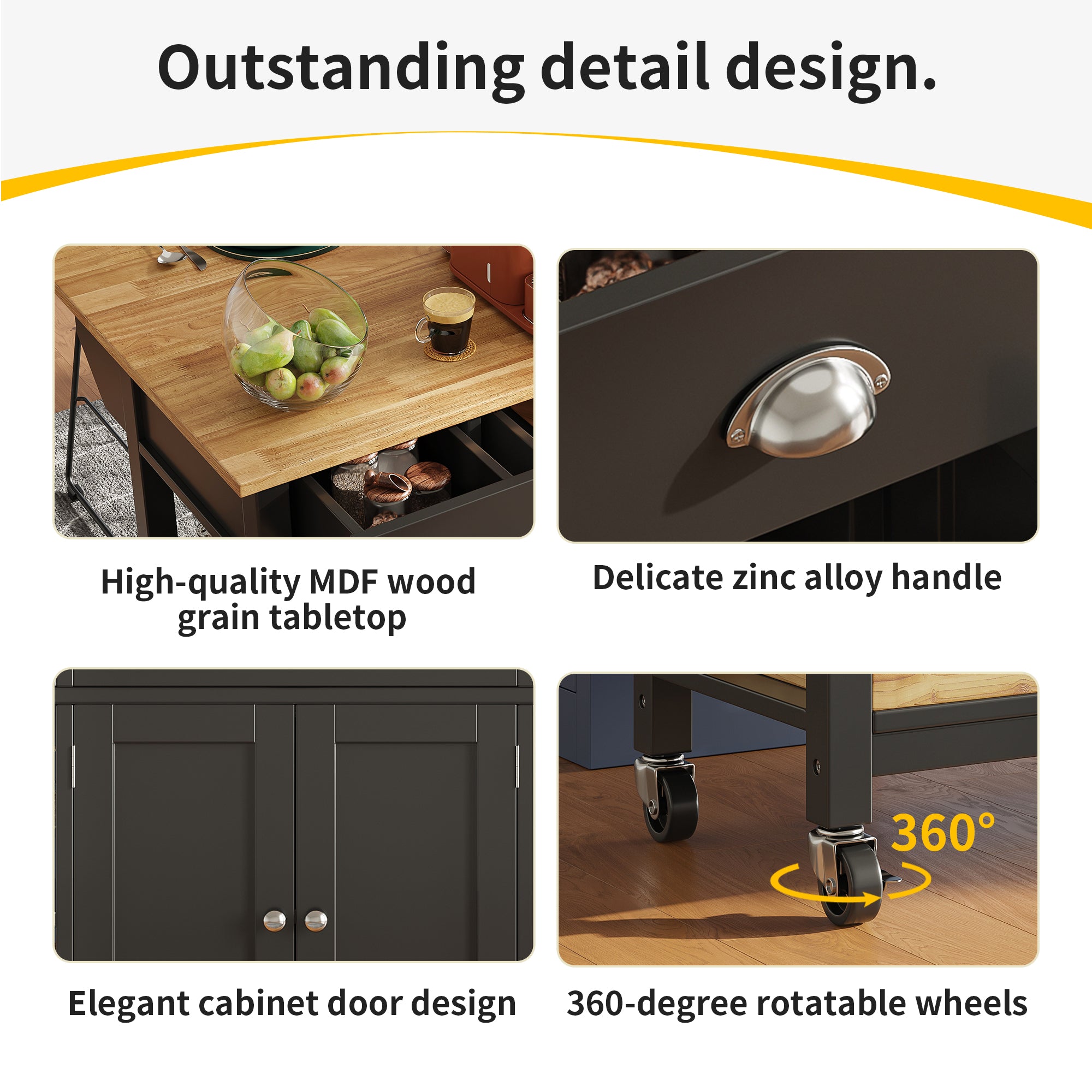 Long Description: The kitchen island trolley is designed in a simple and modern style, perfectly adapting to various home decoration styles. Its unique and attractive design features smooth lines and bright colors, adding an artistic atmosphere to your kitchen. The modeling design enriches the spatial hierarchy and cleverly divides the kitchen into different functional areas for a more reasonable and orderly layout. Choosing this kitchen island is choosing a high-quality lifestyle, making cooking easier and more enjoyable. The ample operating tabletop provides spacious cooking space for kneading, chopping, or plating with ease. Multiple drawers and cabinets offer plenty of storage for kitchenware, tableware, and ingredients, helping to declutter your kitchen. Constructed from high-quality MDF board, it boasts good wear resistance, high temperature resistance, and stain resistance, making it easy to clean and maintain. It opens and closes smoothly, ensuring a long service life and a high-quality user experience.