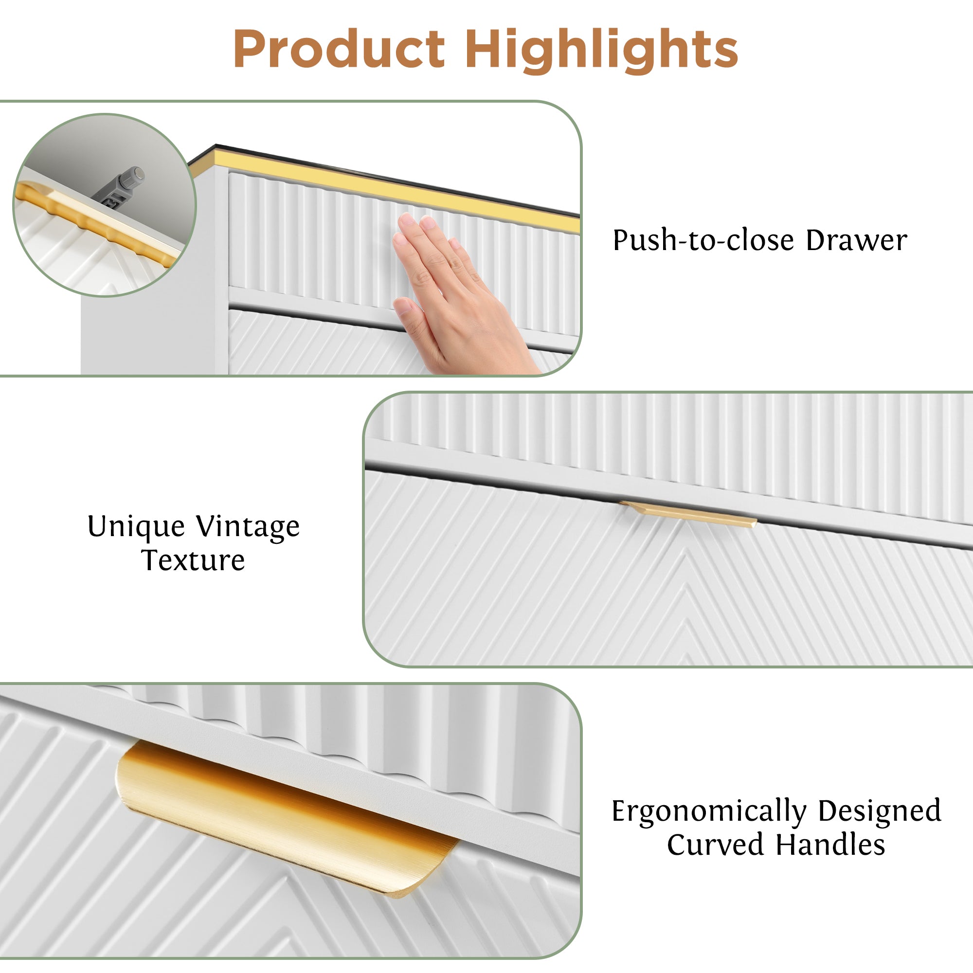Sideboard Cabinet Dresser with 6 Drawers, Amber Glass, White