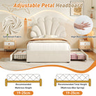 This velvet bed with an adjustable, chic petal headboard offers a versatile choice for mattresses of different thicknesses. Enjoy flexible drawer positioning for any room setup – place both drawers near the footboard for more space by your nightstand, or on one side to fit against a wall. The headboard is padded with high-resilience sponge and covered in soft velvet to give you better support when reading and relaxing. The bed frame features sturdy metal and wood construction, increasing its stability and load-bearing capacity. Additionally, this bed frame allows you to place a mattress directly, saving you money on box springs and greatly simplifying installation. This is the IDEAL BED FOR ALL PRINCESSES!