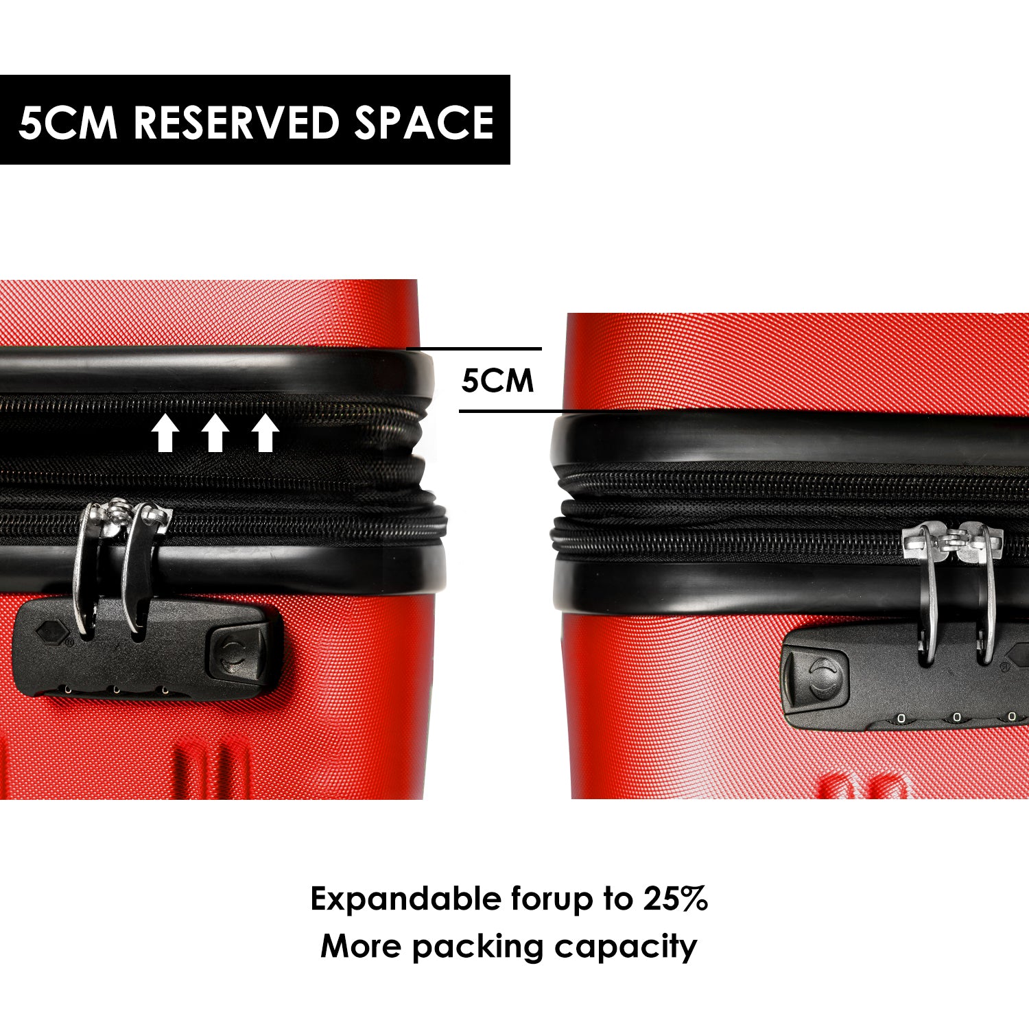 ABS Hard Shell Travel Trolley Suitcase 4 Wheel Luggage Set, 24", Red