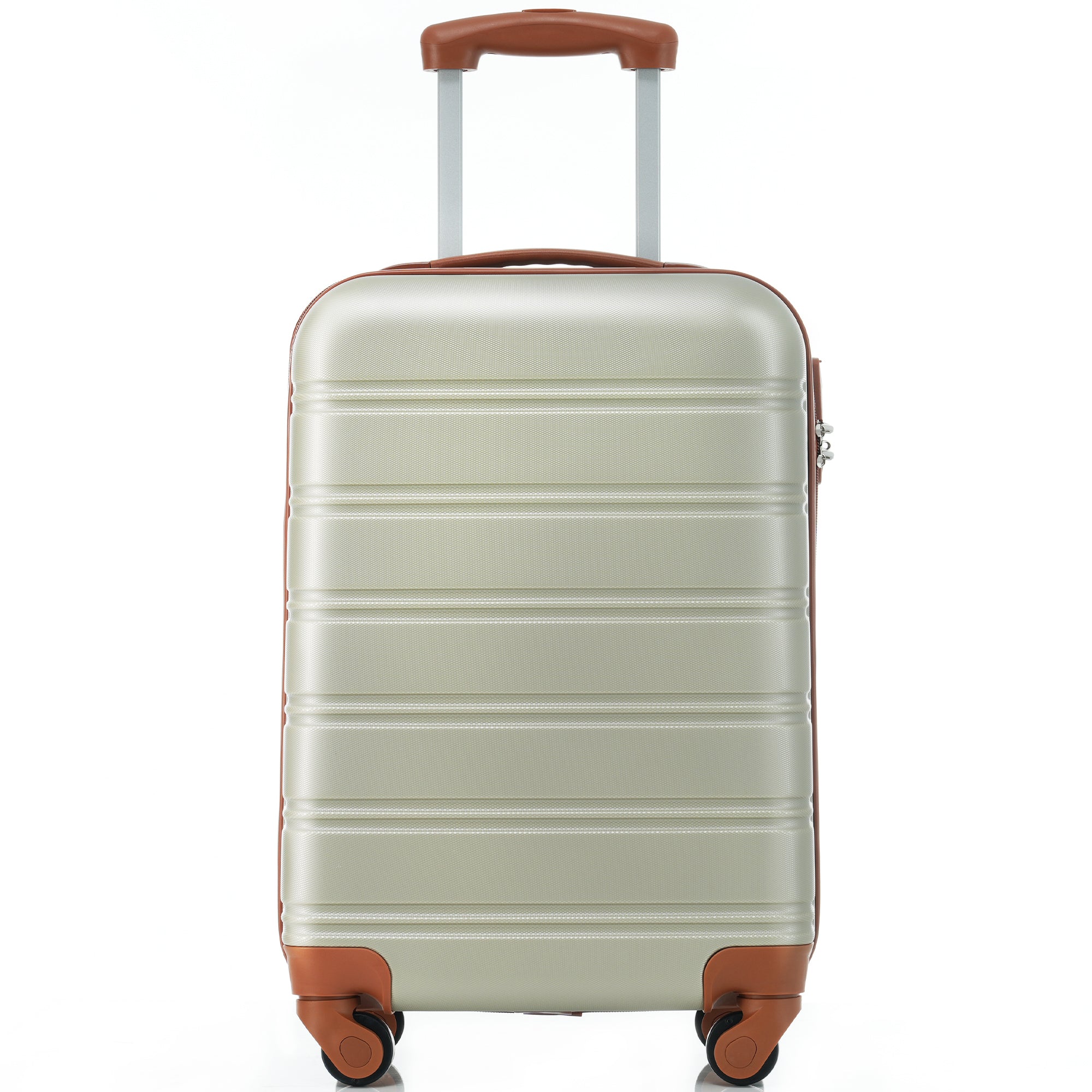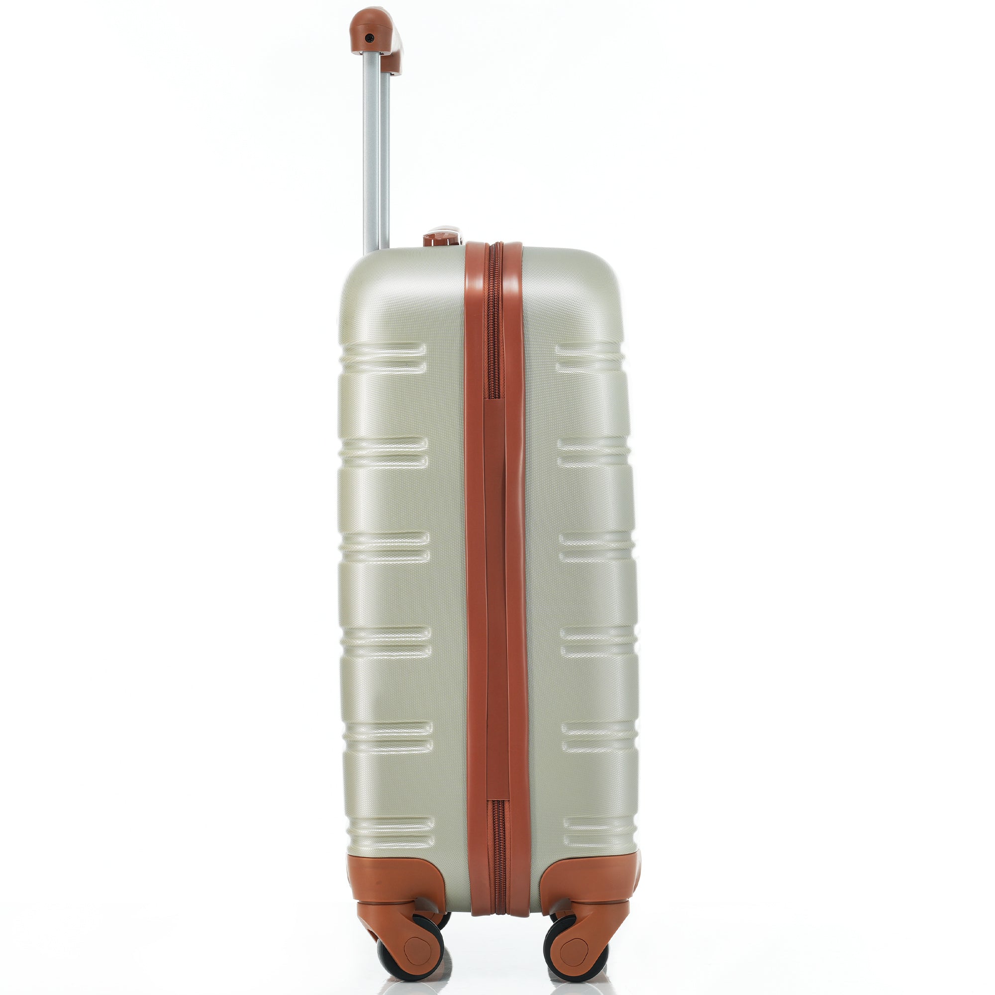 ABS Hard shell Travel Trolley Suitcase 4 wheel Luggage set Hand Luggage, 20", Golden green and Brown
