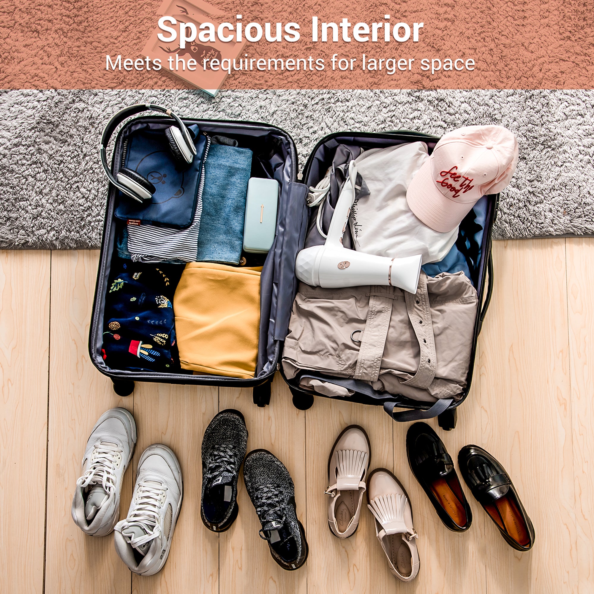 Extendable Suitcase:If you are travelling as a family or have a lot of luggage, you can use the extension function of the suitcase, which allows you to put more items for your trip and provides you with a convenient way to travel.
