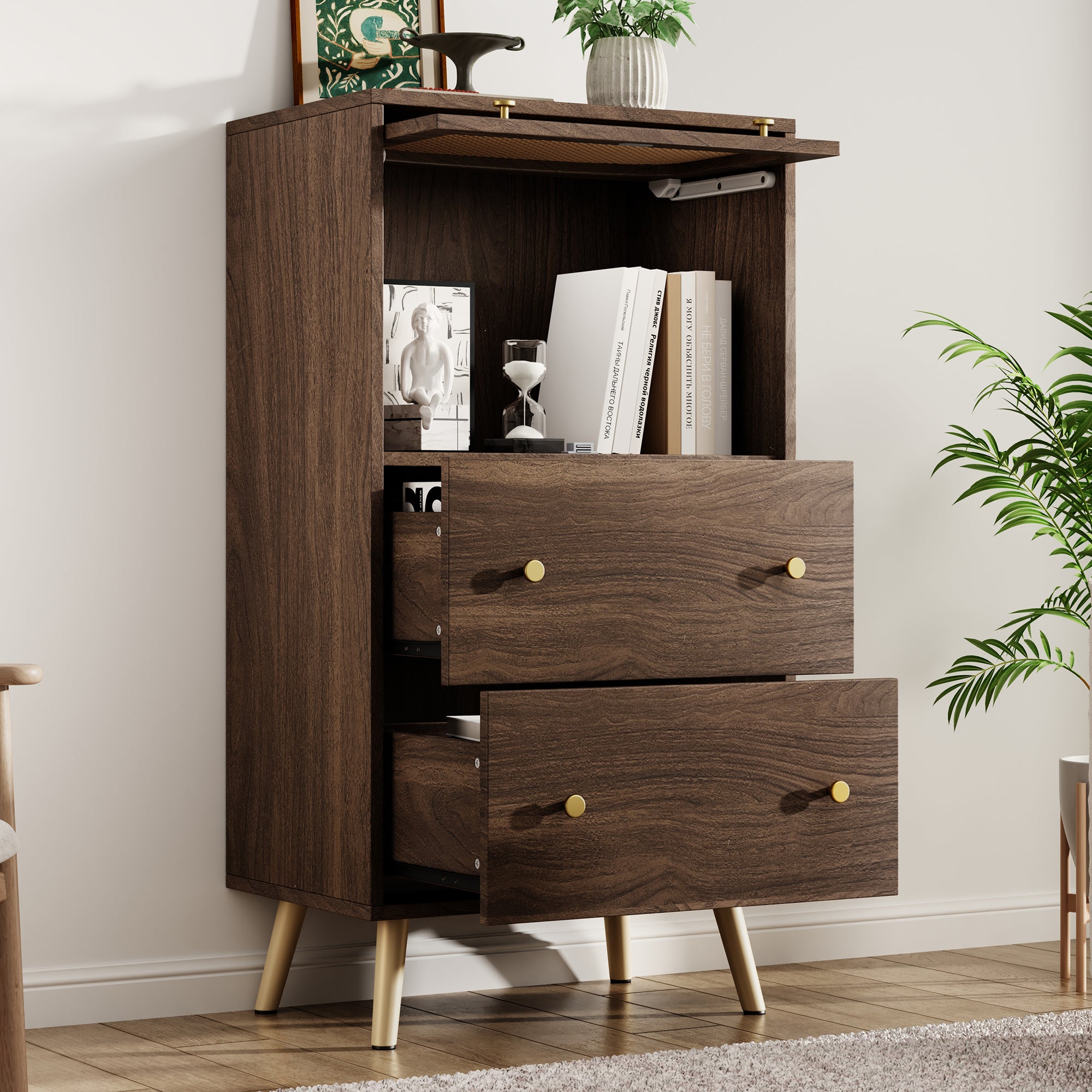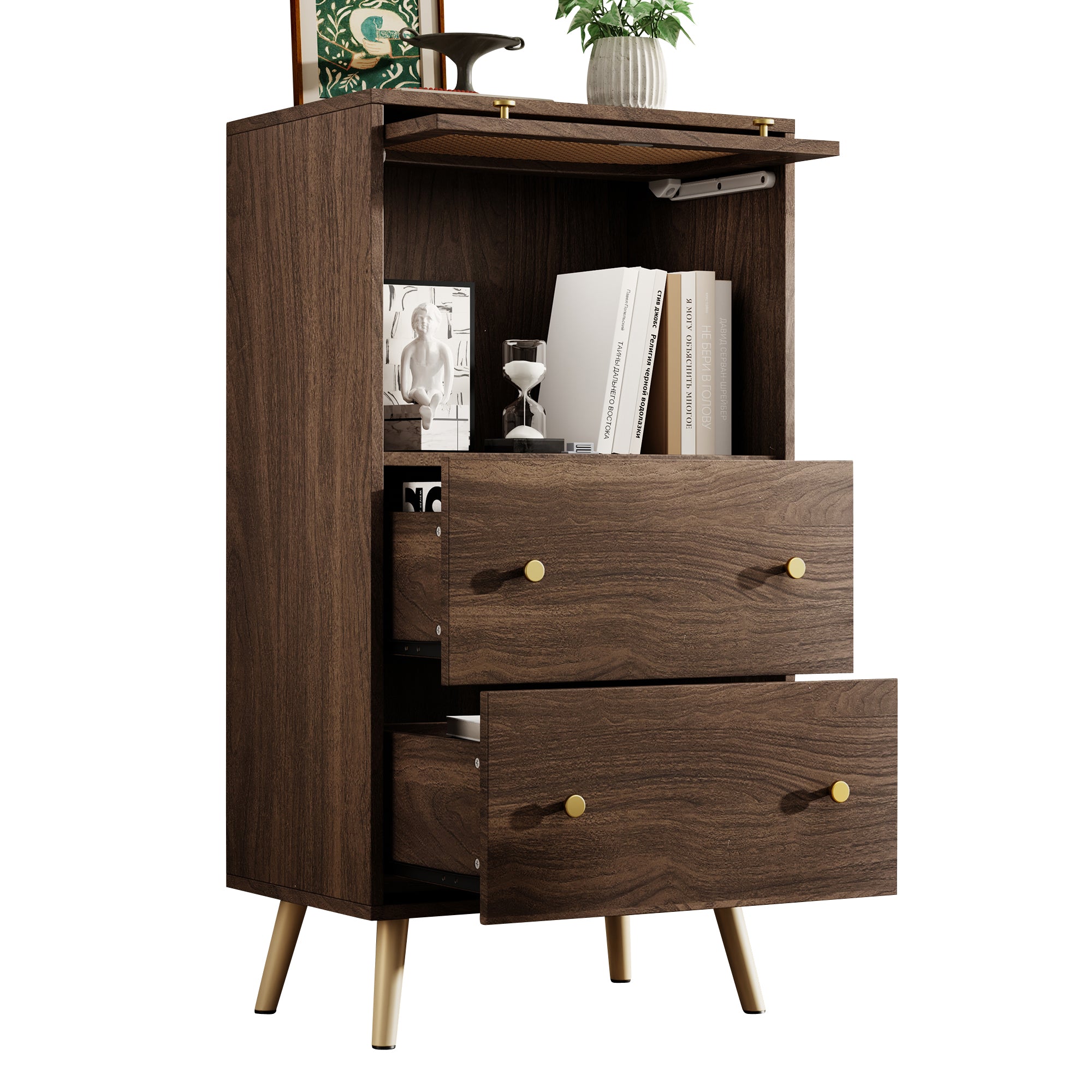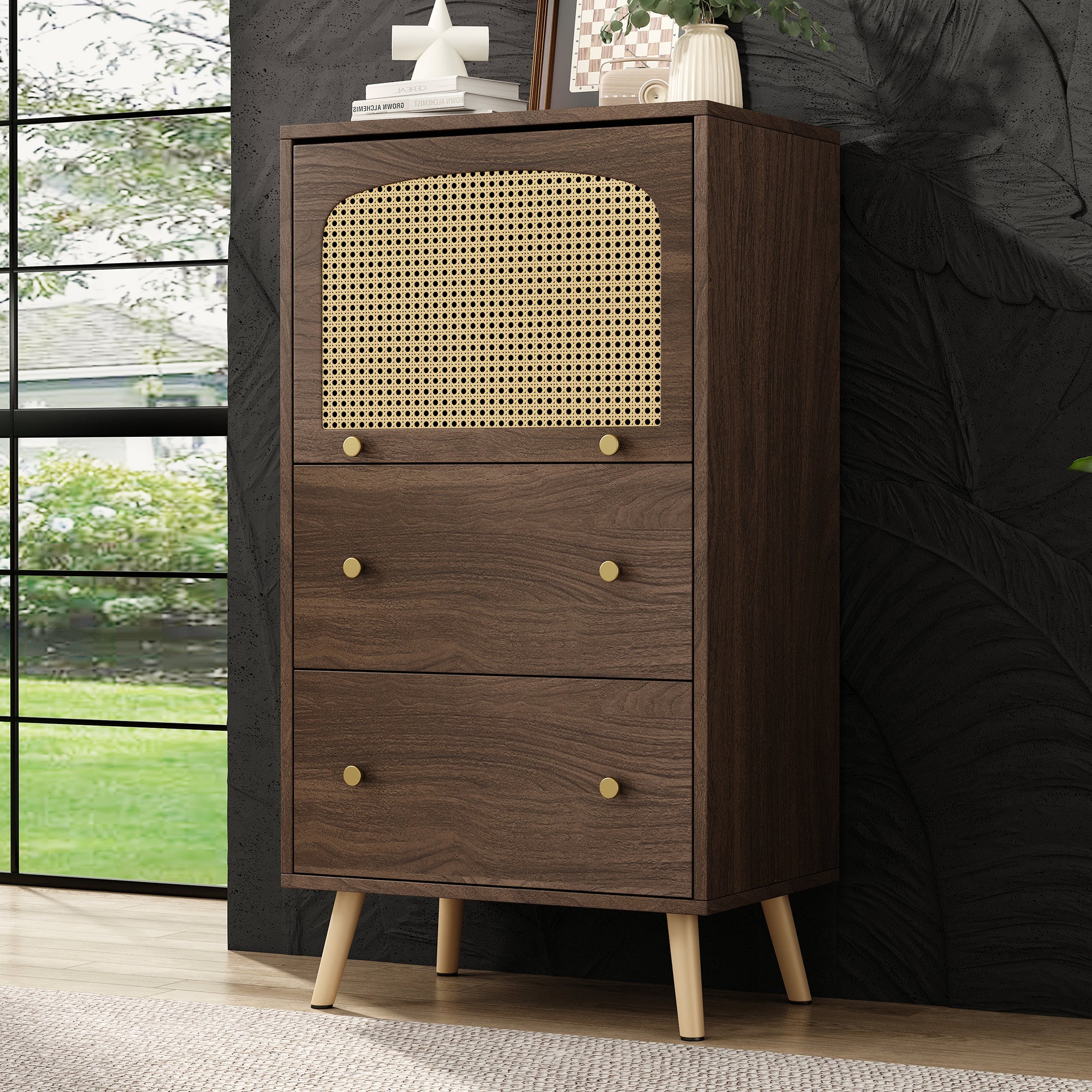 Breathable Rattan Storage Sideboard, 2 Drawer 1 Upward Flip Door Storage Bookcase Cabinet, Particleboard