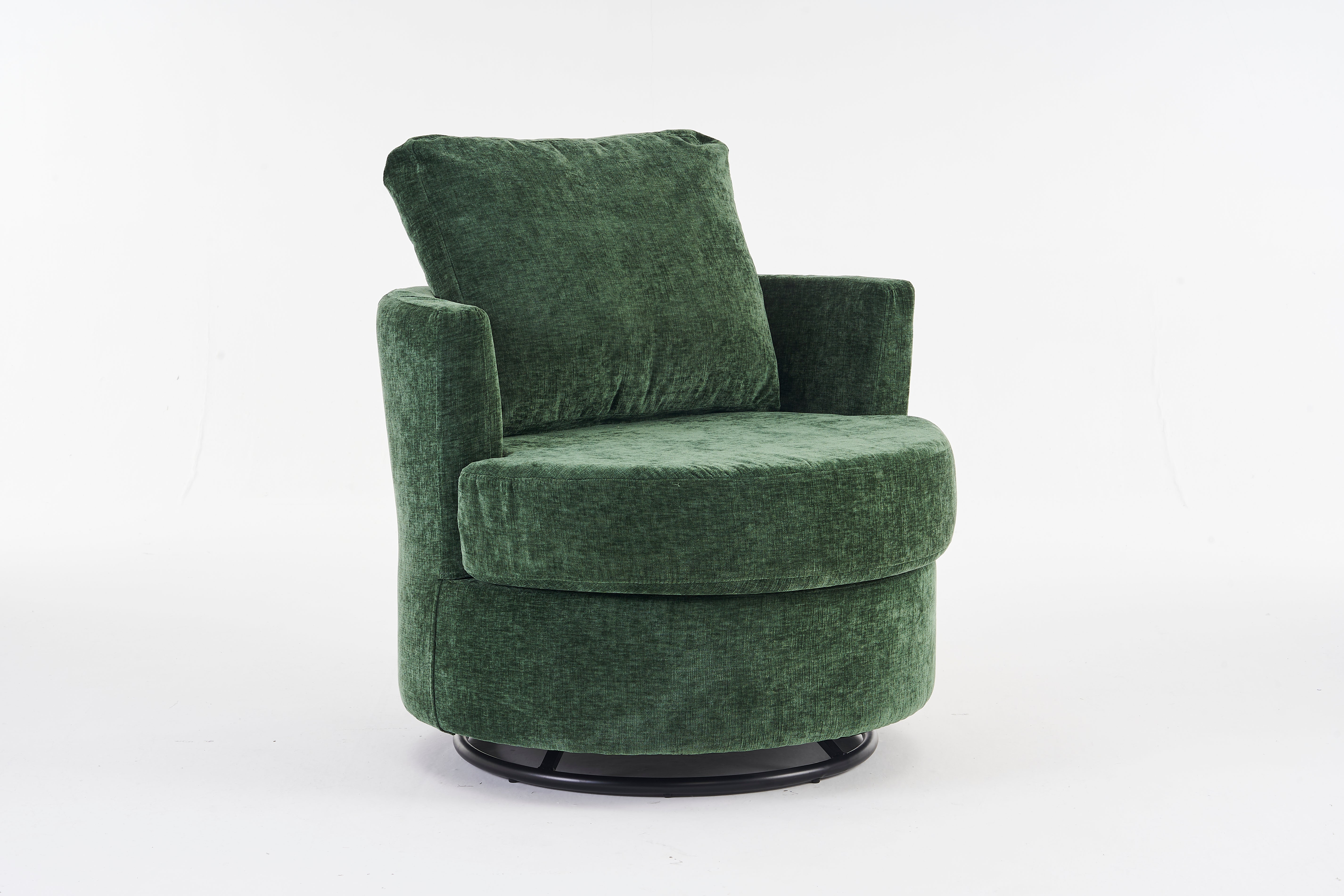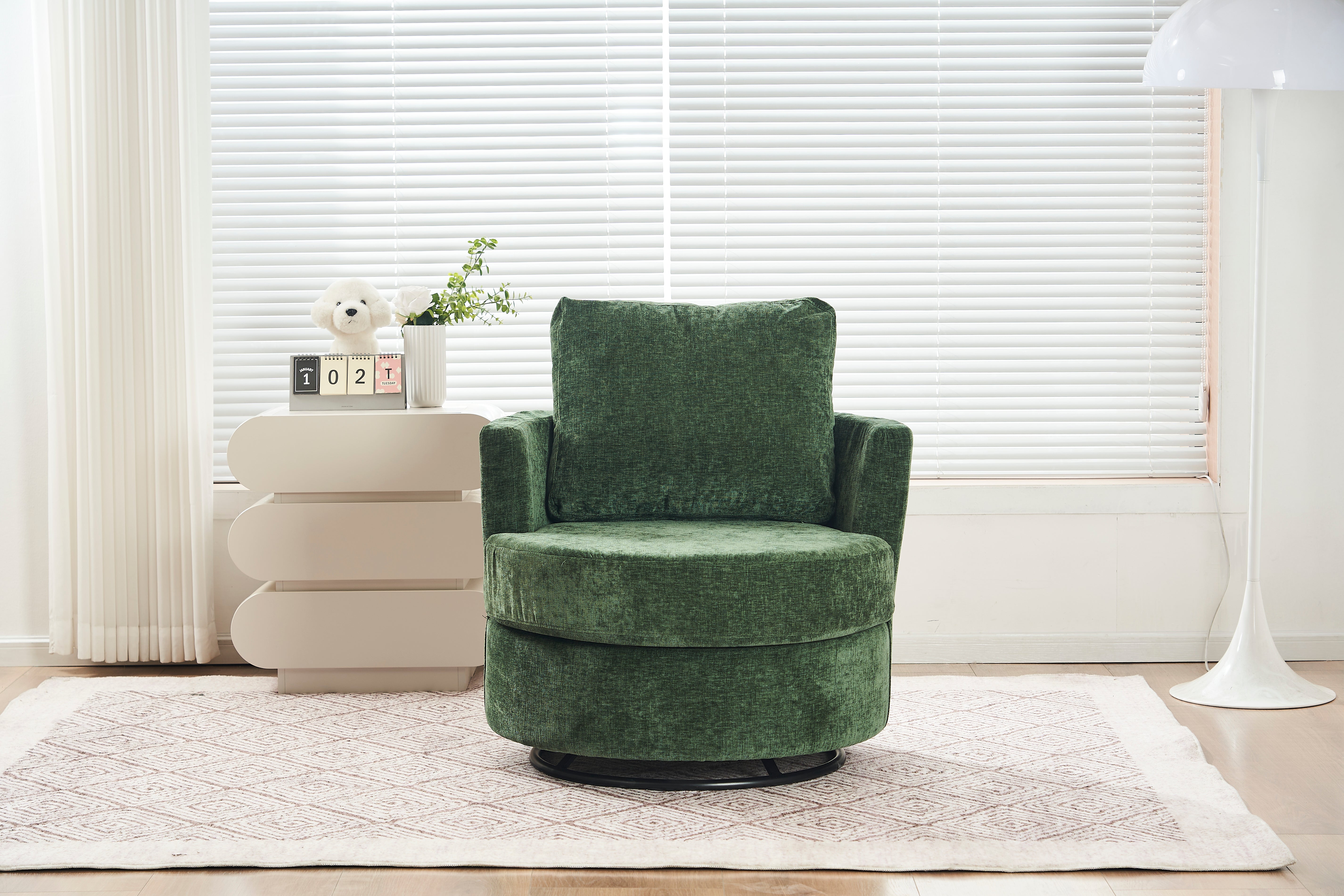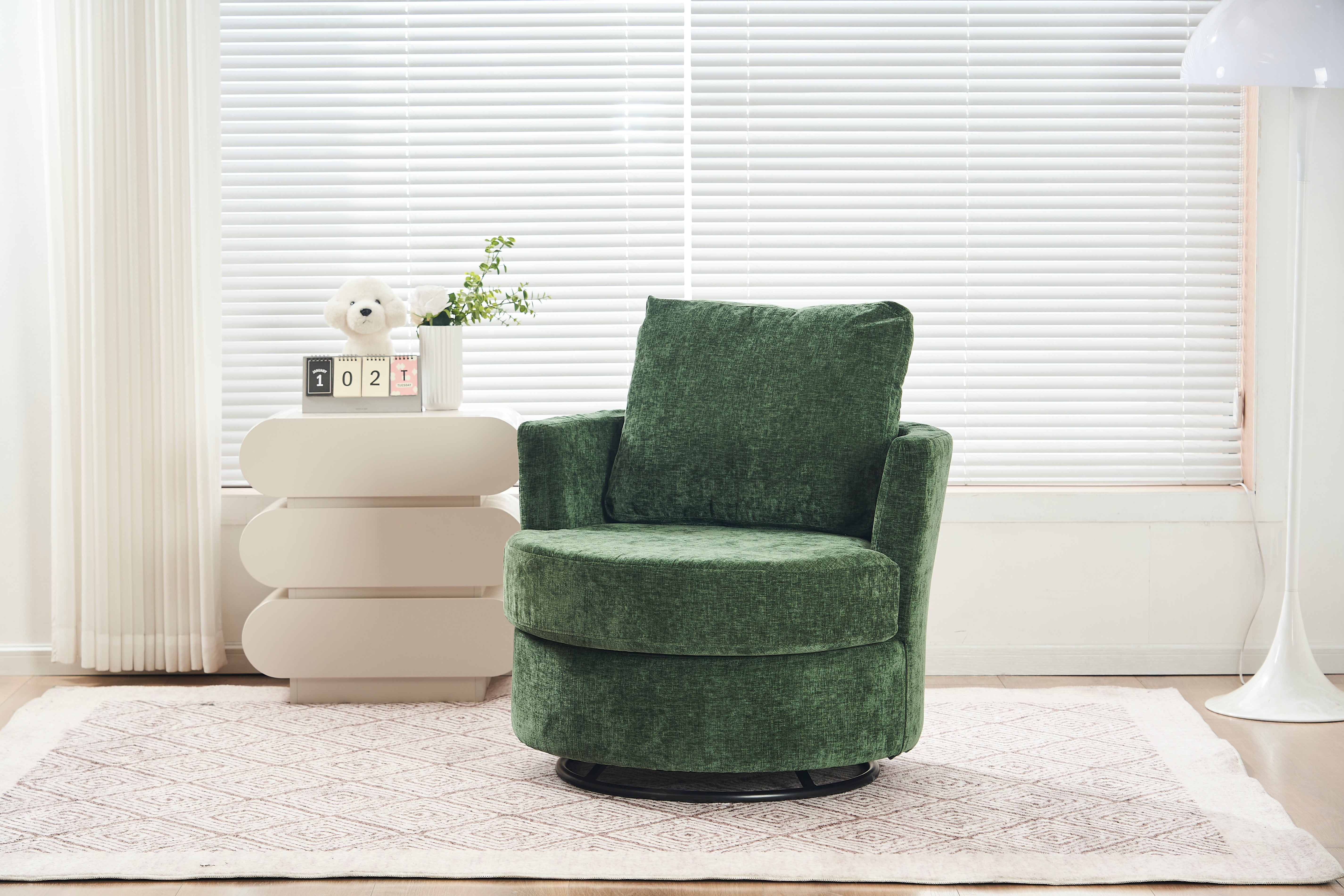 Chenille Swivel Armchair with Back Cushion Pillow, Thick Foam Pad, Green