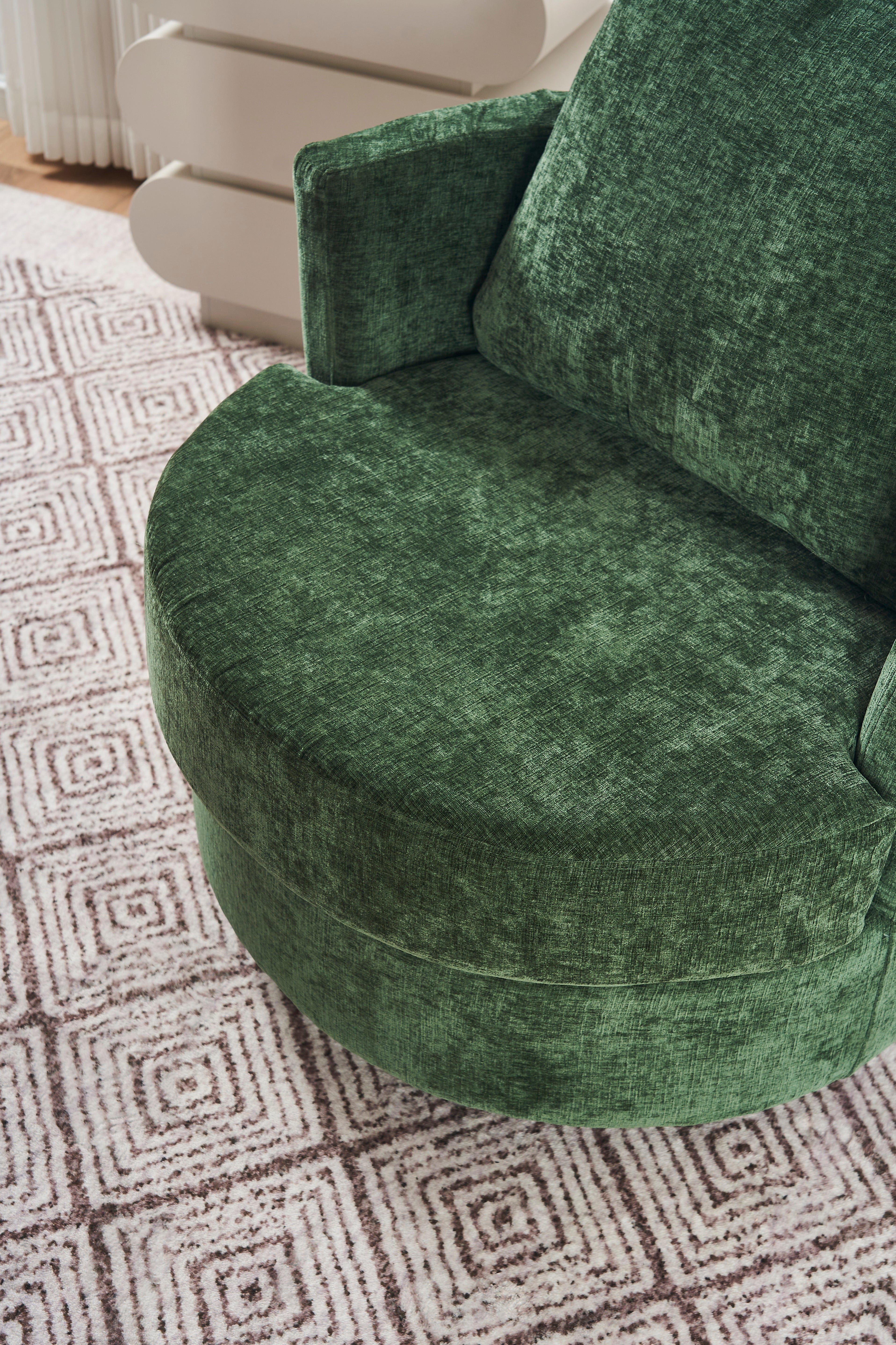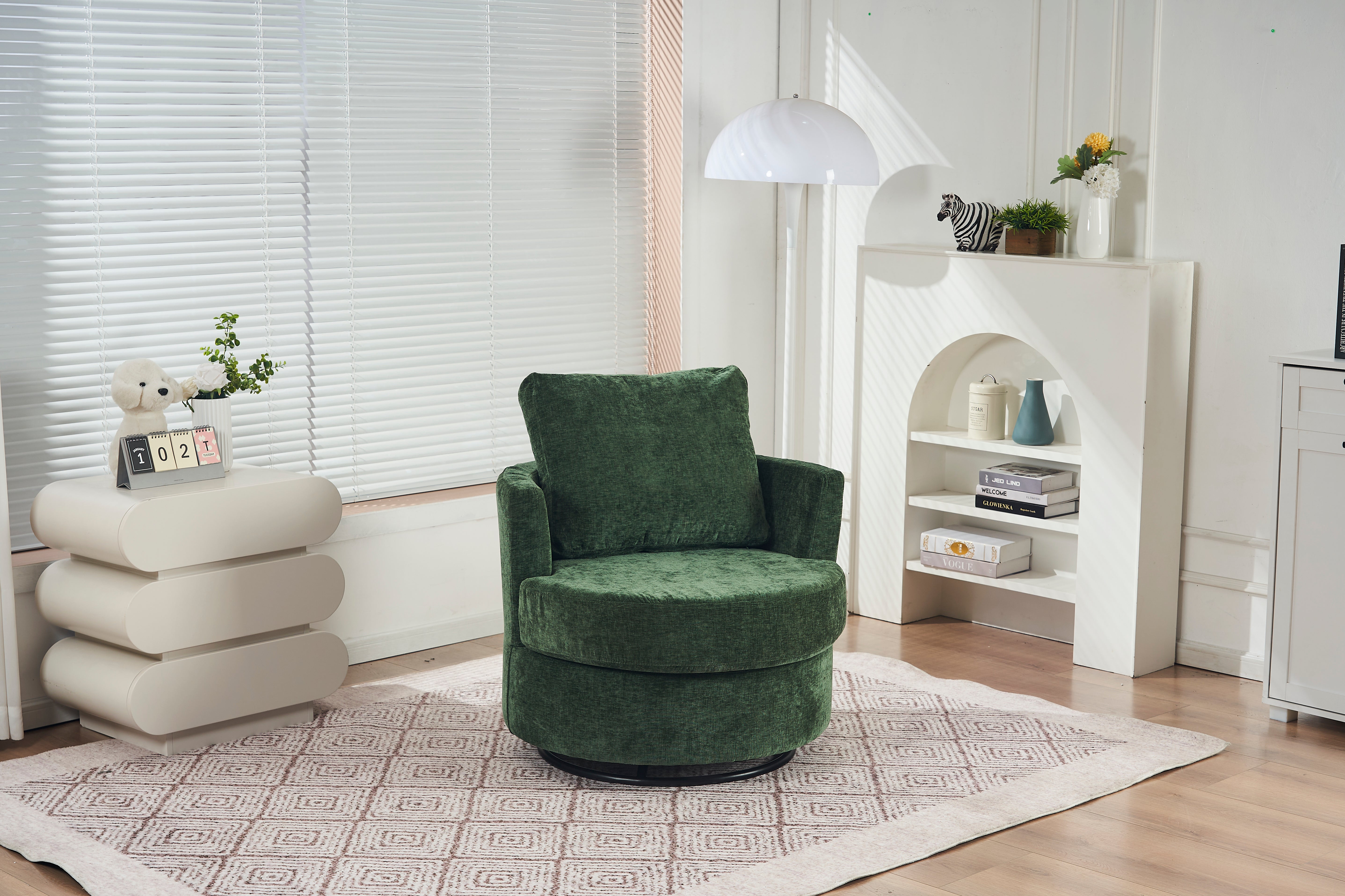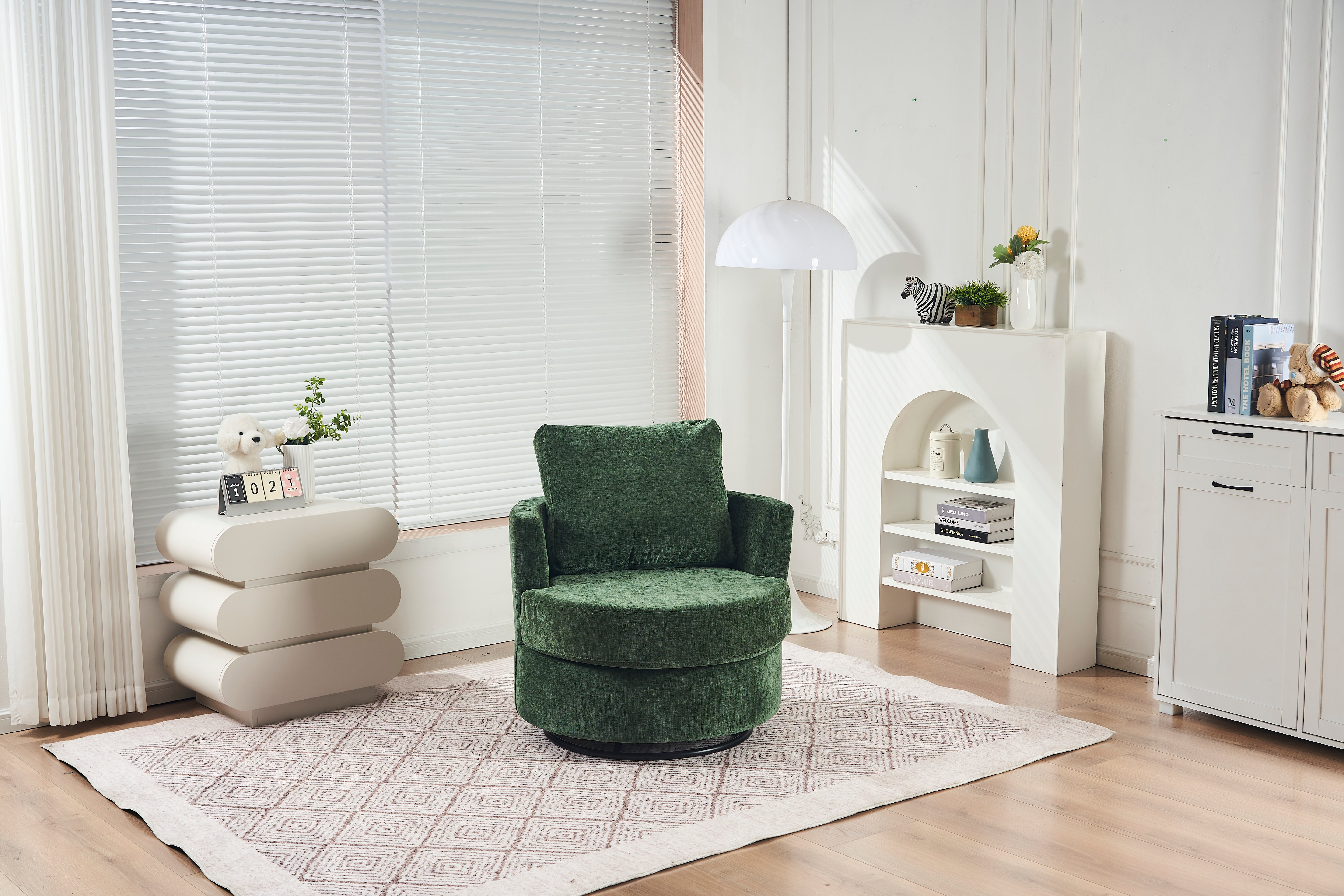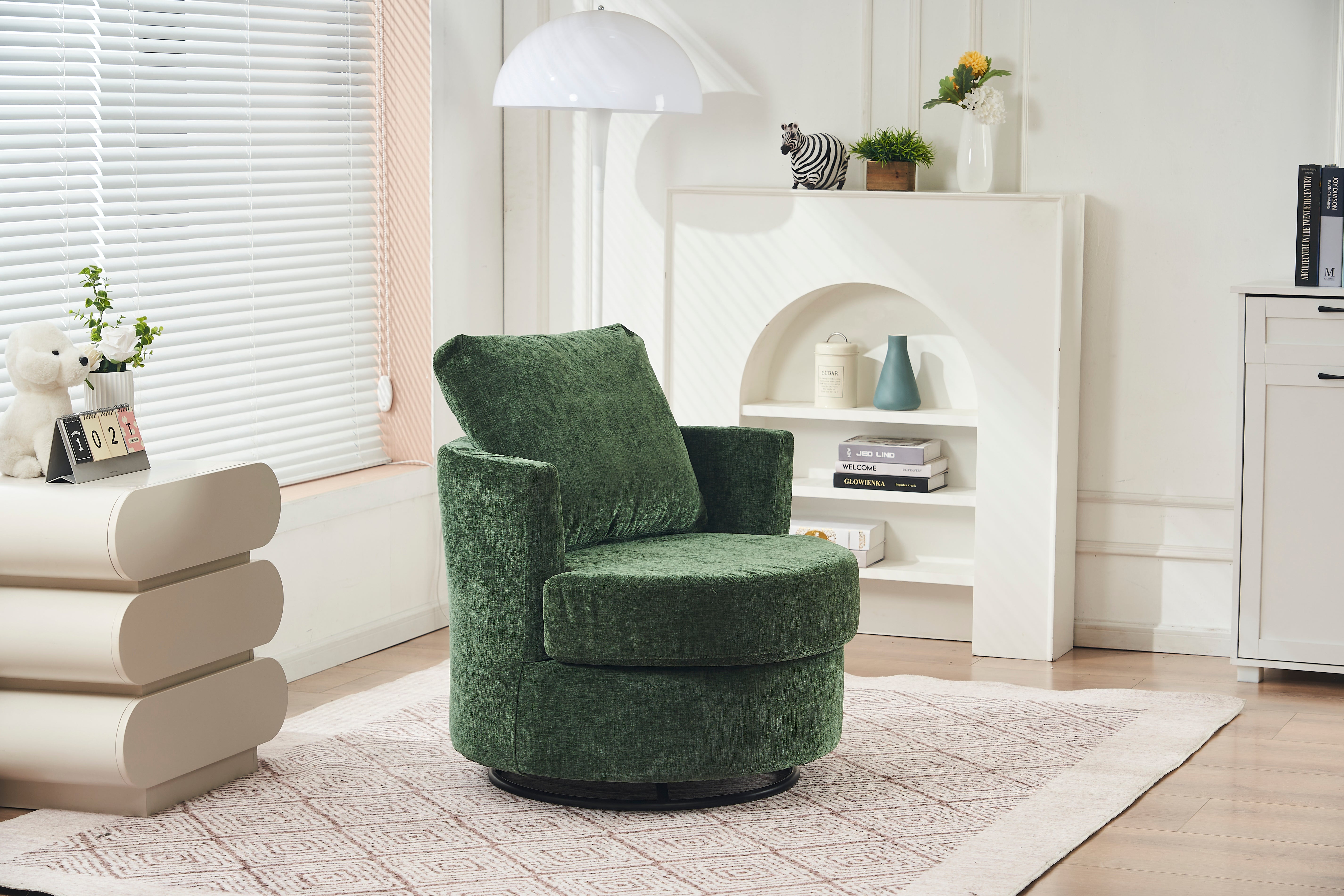Chenille Swivel Armchair with Back Cushion Pillow, Thick Foam Pad, Green