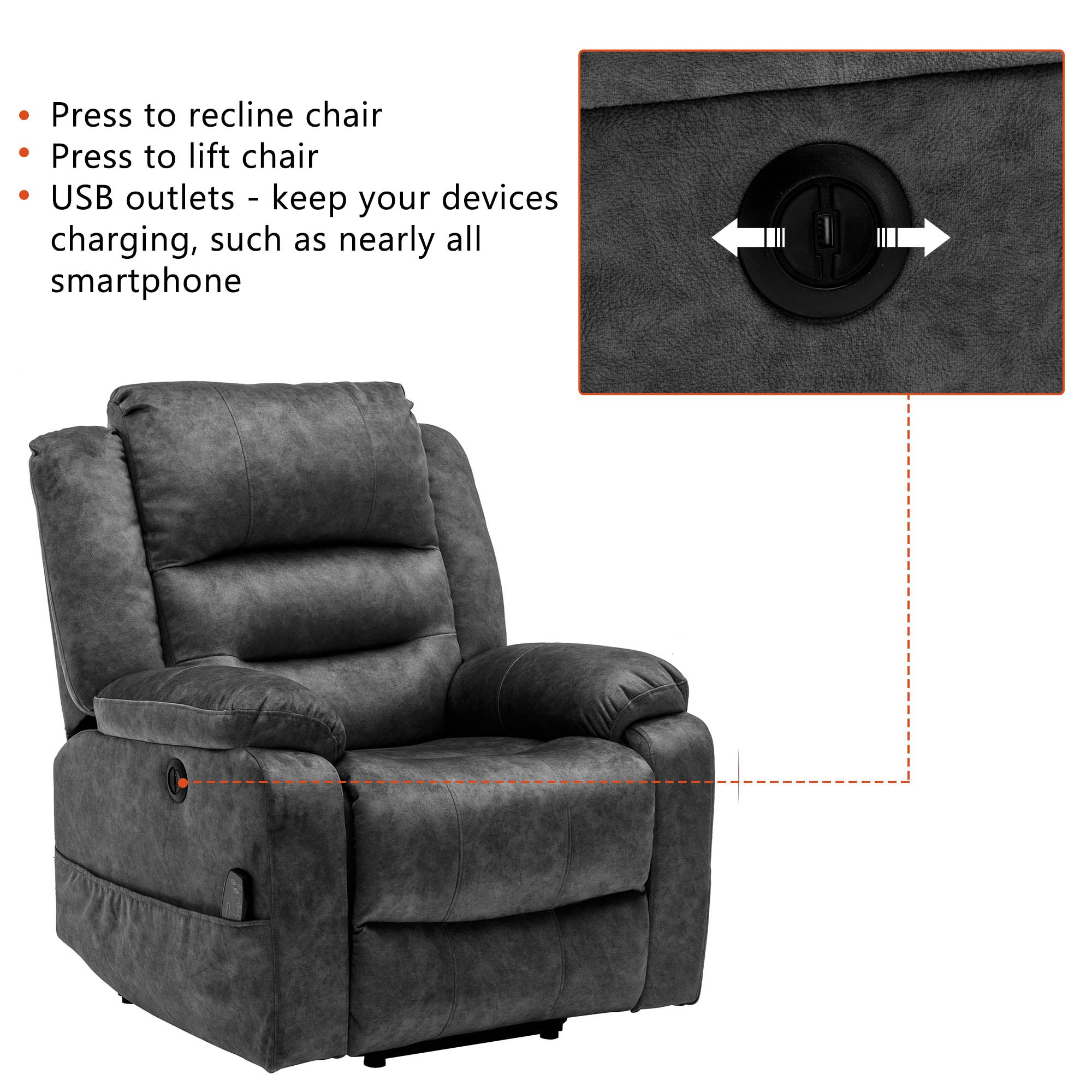 Electric Power Lift Recliner Chair with Massage, Heat, USB Ports & Side Pockets, Single Overstuffed Breathable Fabric