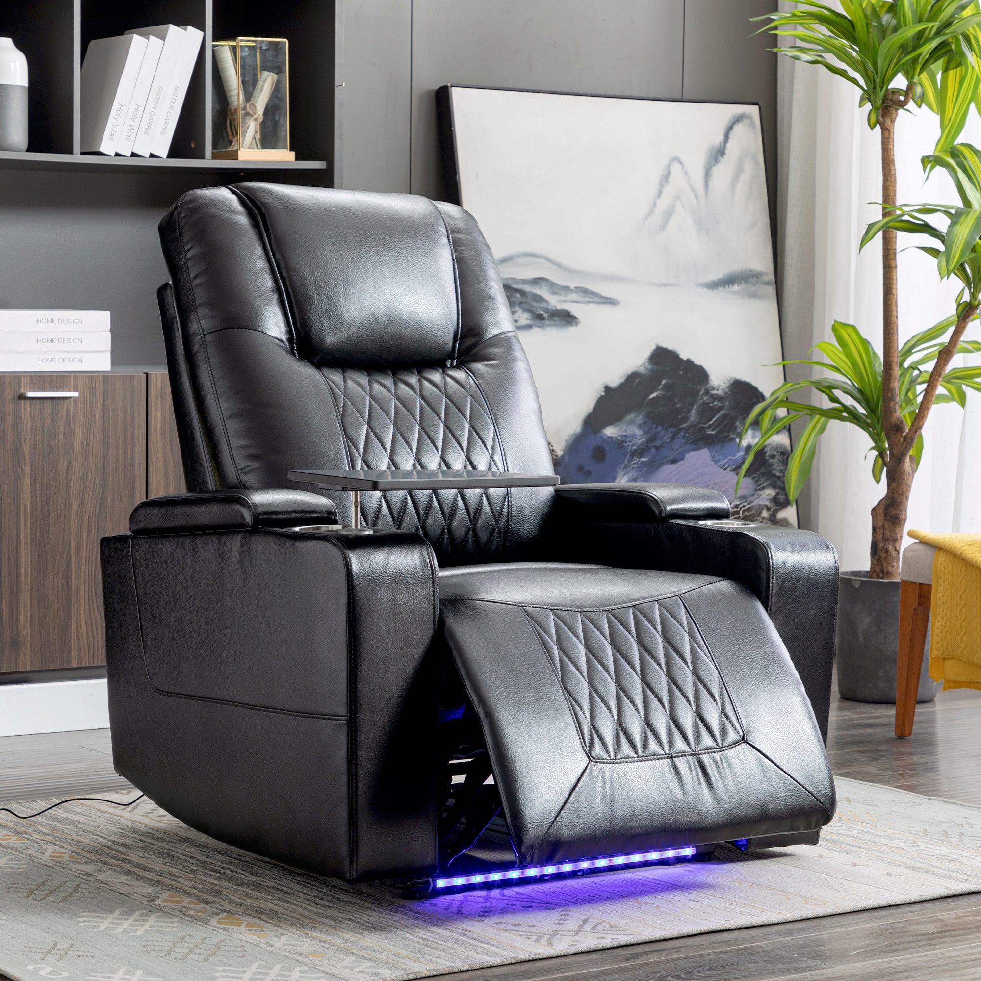 Electric Recliner Chair with USB Charge Port, 360 Swivel Tray Table, Hand in-Arm Storage, Cup Holders, Ambient Lighting