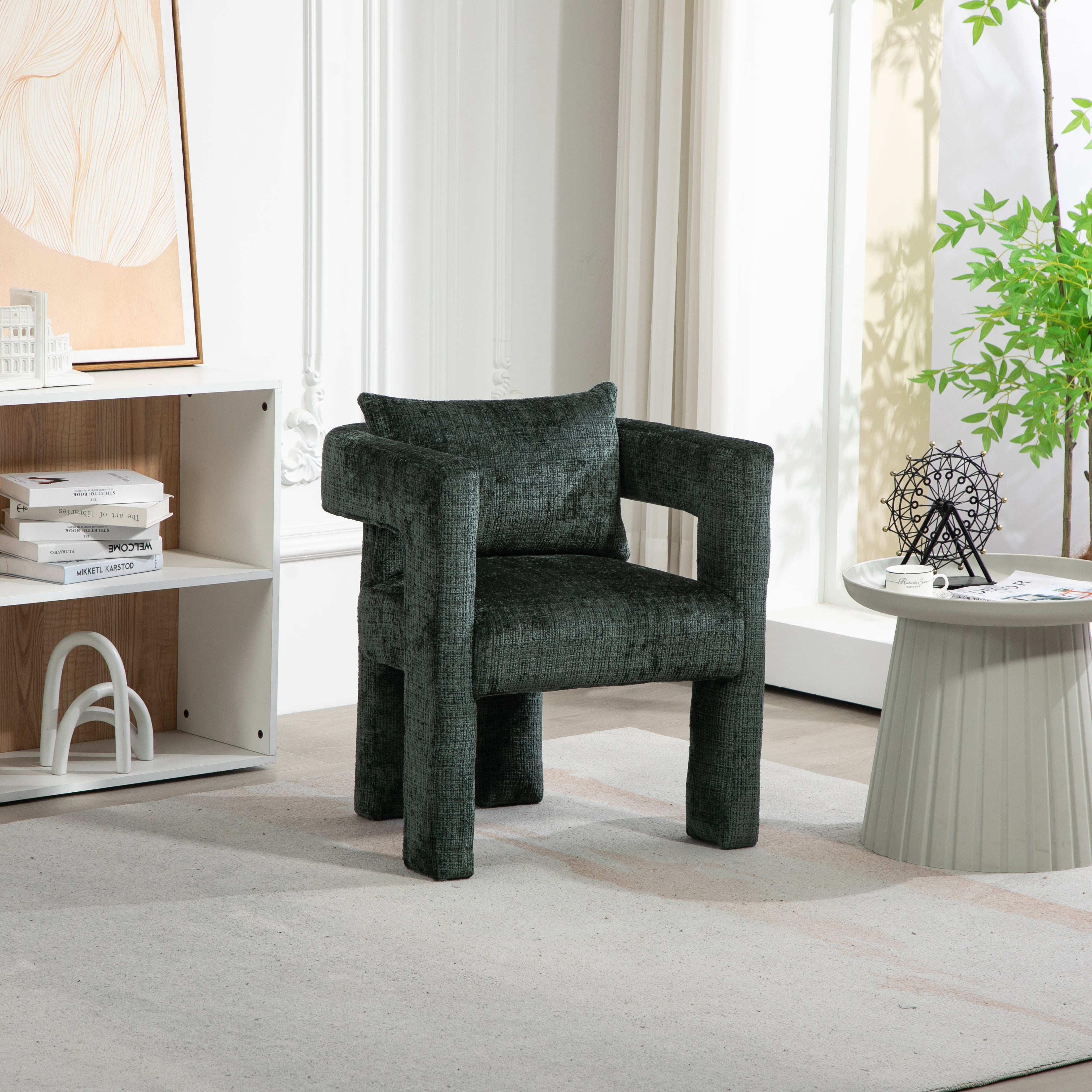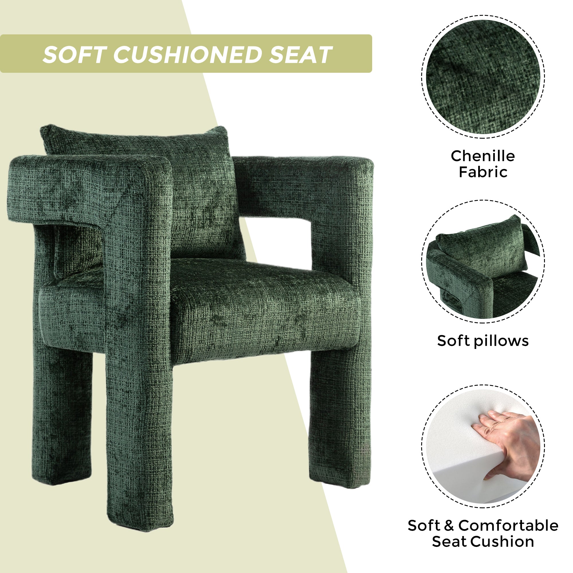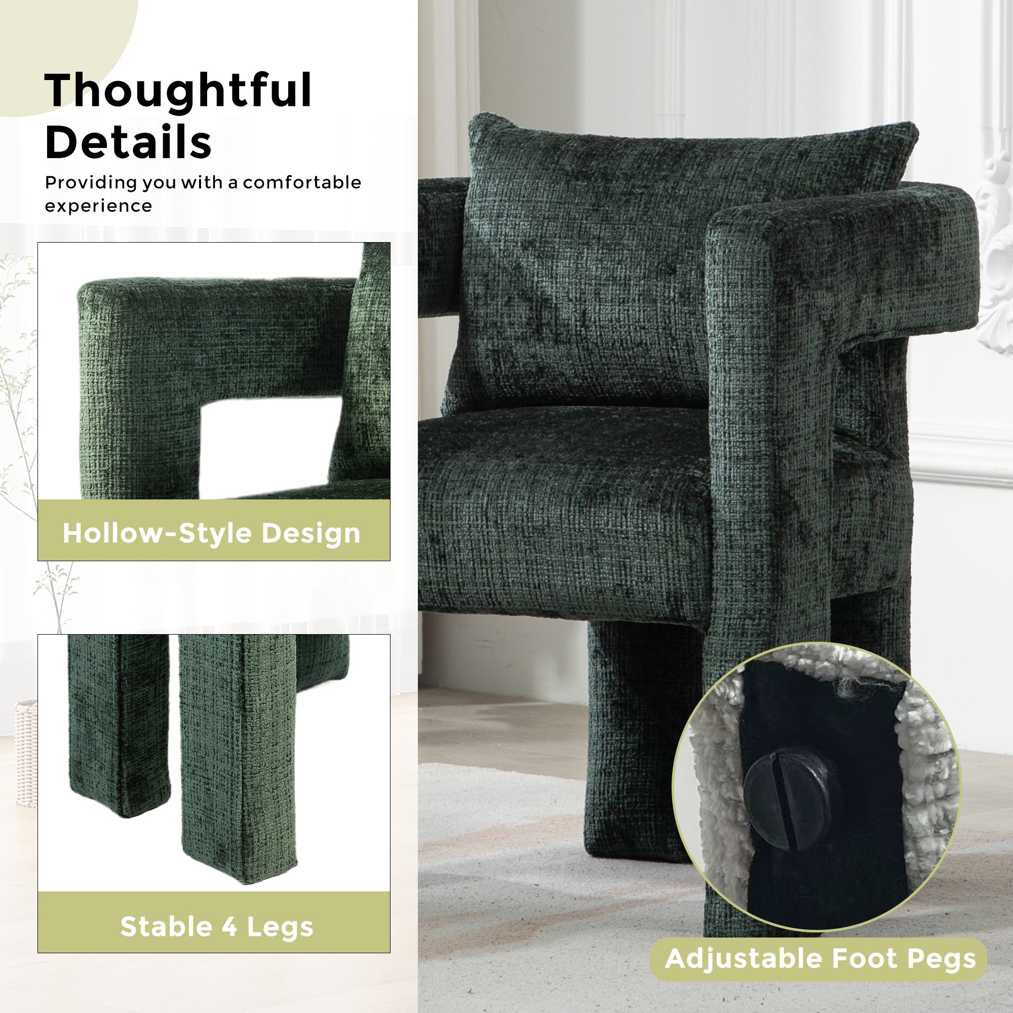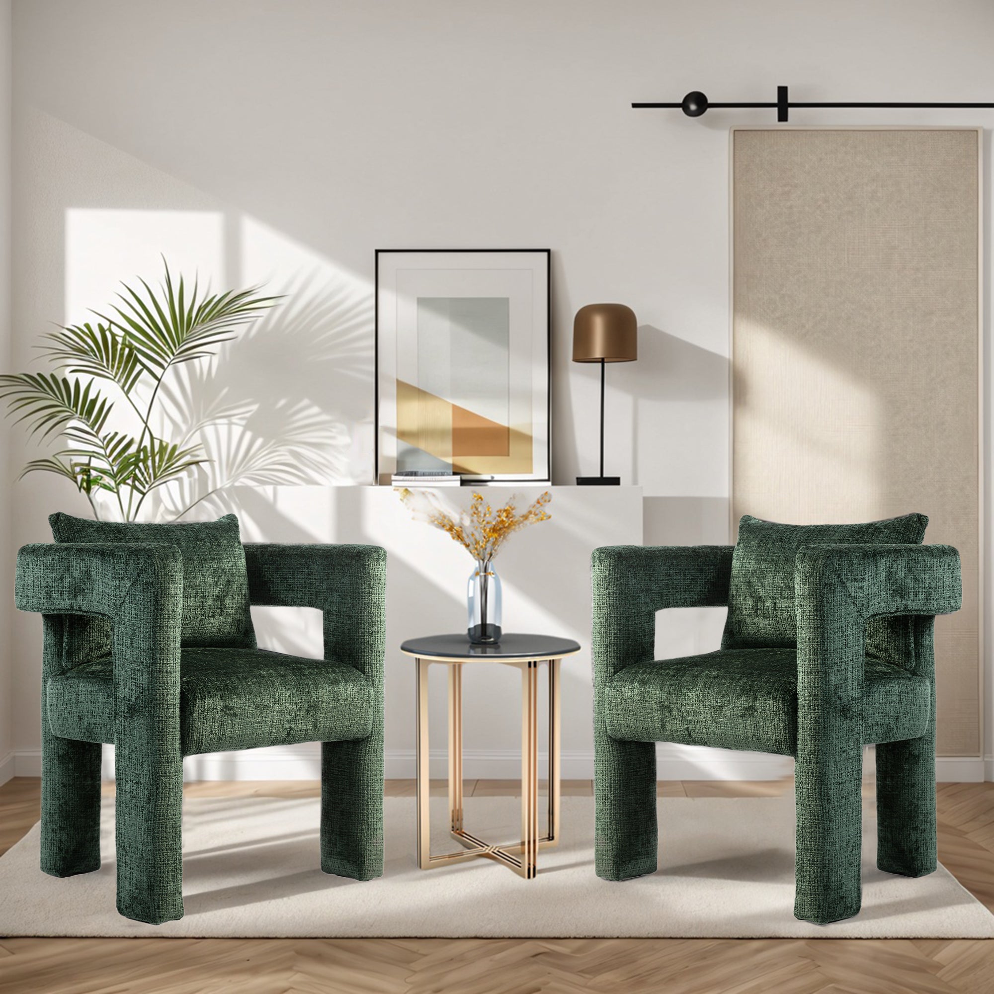 GOMYWAY Modern Chenille Lounge Chair with Hollow Armrest Design and Comfortable Cushions, Emerald (Set of 2)