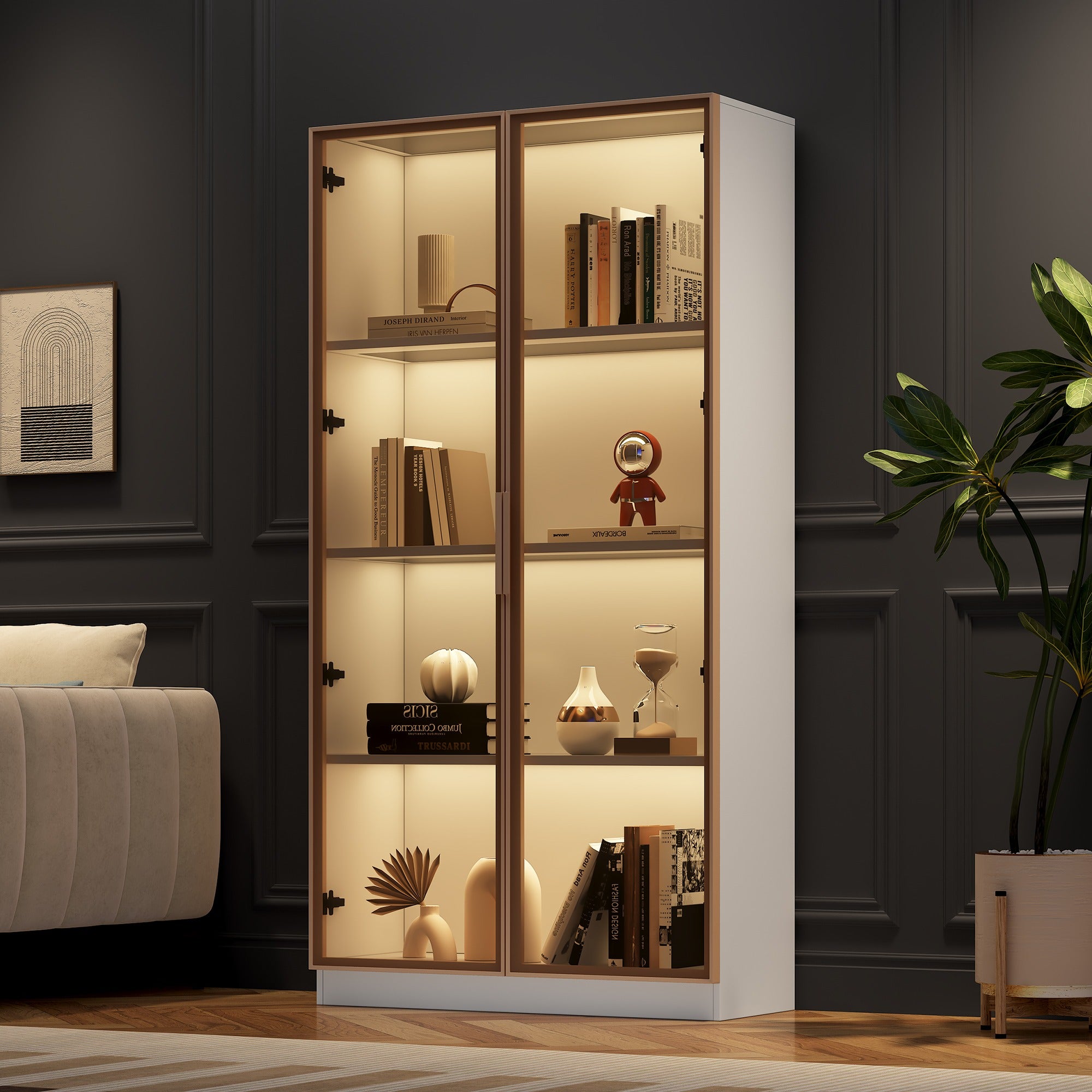 LED Display Cabinet, Clear Display Case for Figures with Tempered Glass Door and Storage Shelves, White