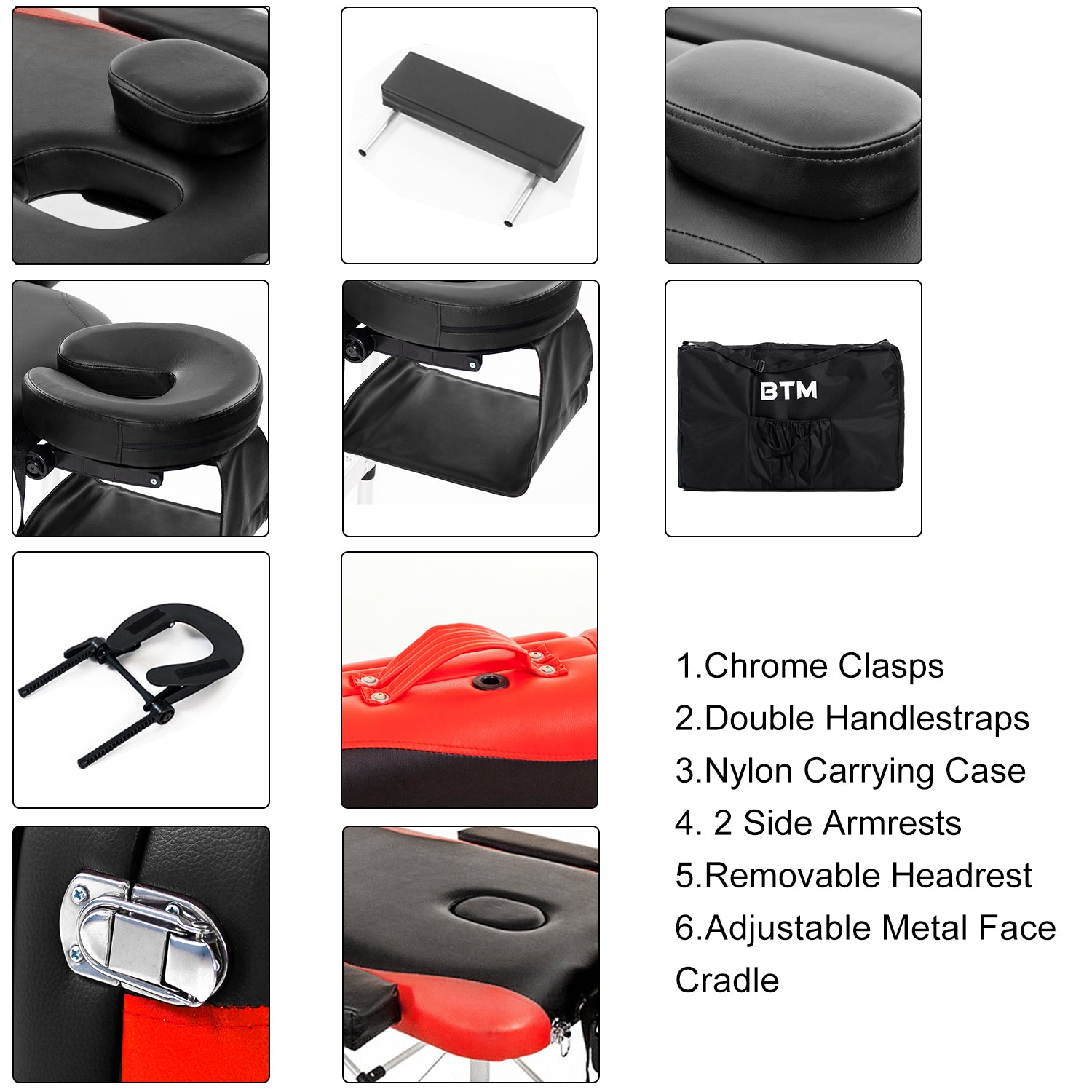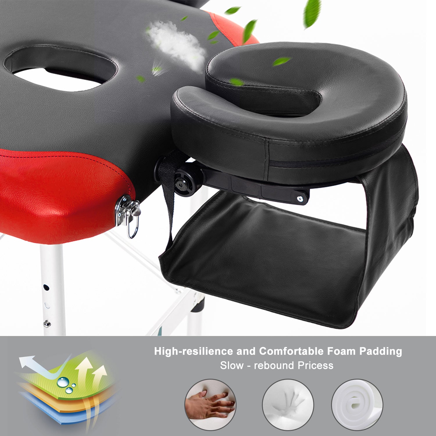 Product Name:Massage Table Couch Bed Aluminium Deluxe Lightweight Professional Beauty Tattoo Spa 3 Section with Premium PU Leather and 5 cm High Density Multi-Layer Foam Headrest Arm support and Carrying Bag Red