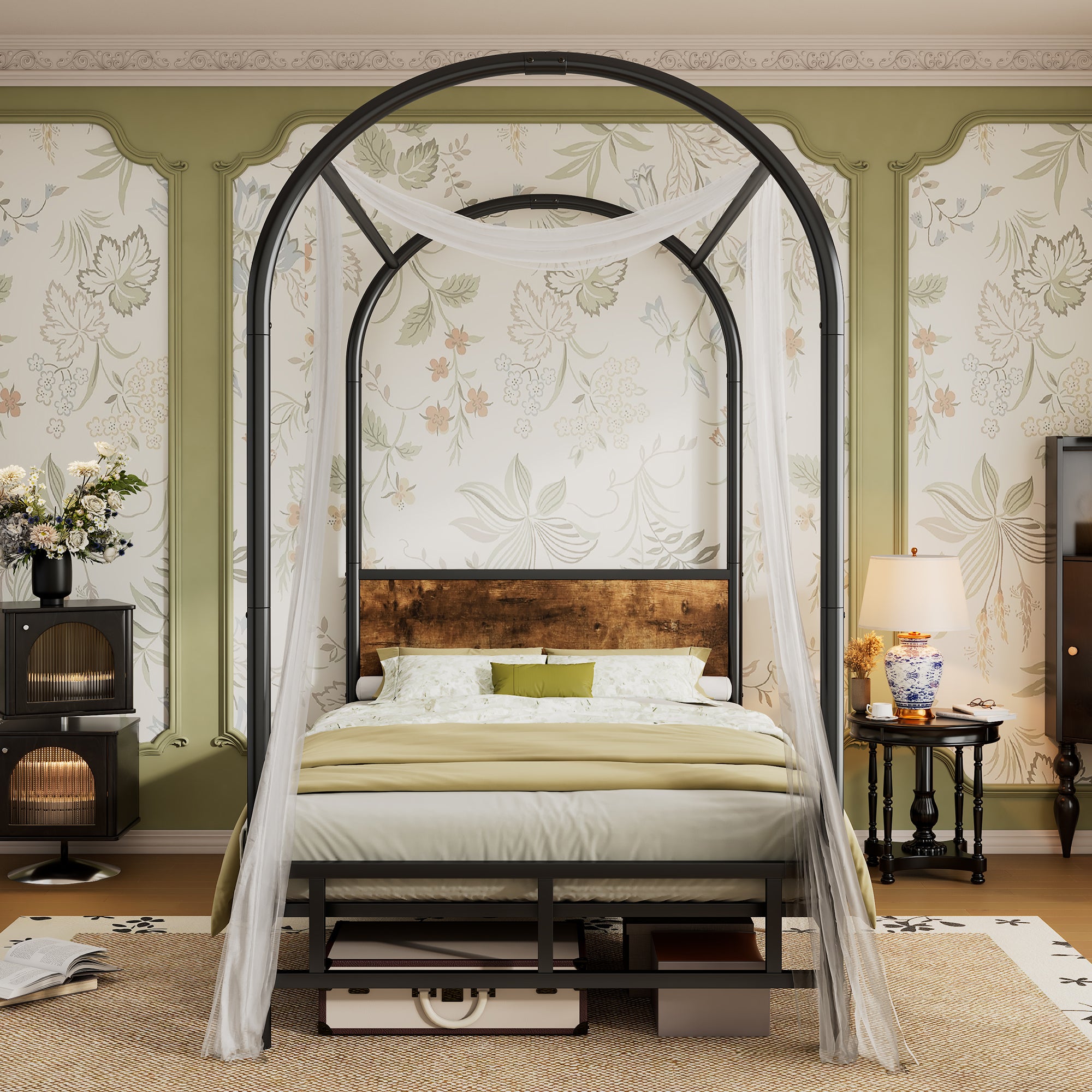Selling Points: * Includes wood headboard, footboard, posts, canopy, slats, and rails