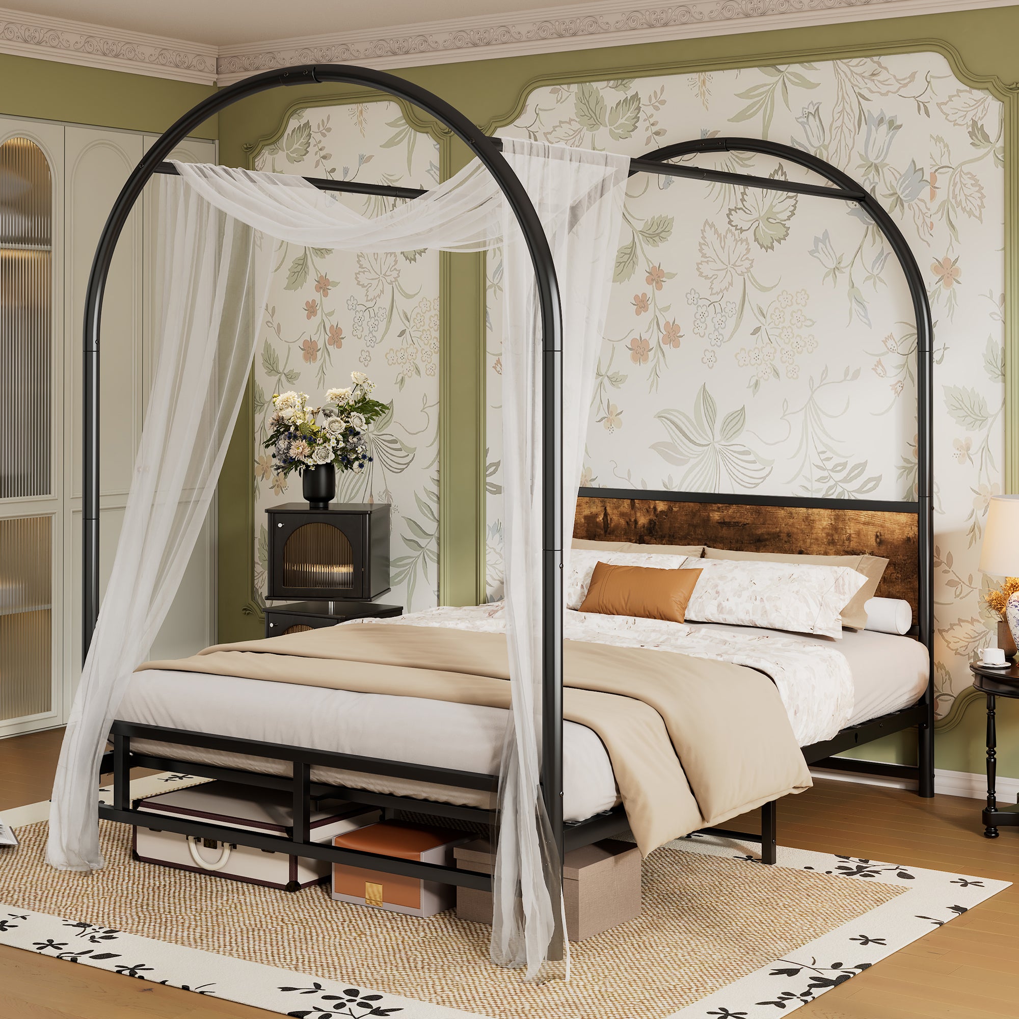This metal double bed, measuring 135x190cm (4ft6), is crafted from a sturdy iron frame and MDF, ensuring longevity and stability. Designed with a clean silhouette, this eye-catching piece is durable with secure metal slats that do not require a foundation. It comes with a sophisticated headboard and footboard, and with metal side rails and center legs to provide full support and comfort to you and your mattress. The canopy bed is also practical with 26cm of clearance beneath the bed, ideal for storing things away.