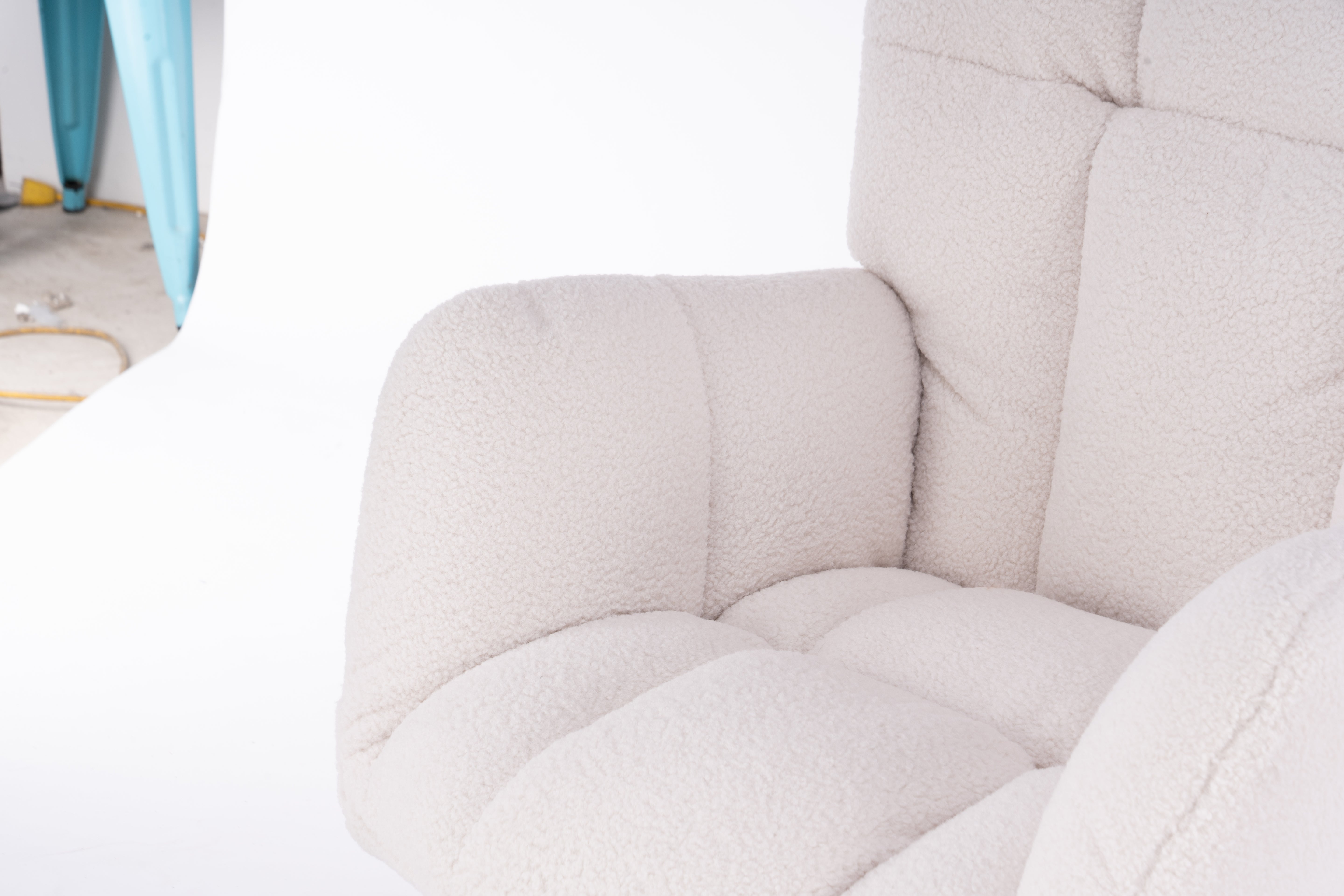 Product Name:Mid Century Modern Teddy Fabric Tufted Upholstered Rocking Chair Padded Seat For Living Room Bedroom,Ivory White