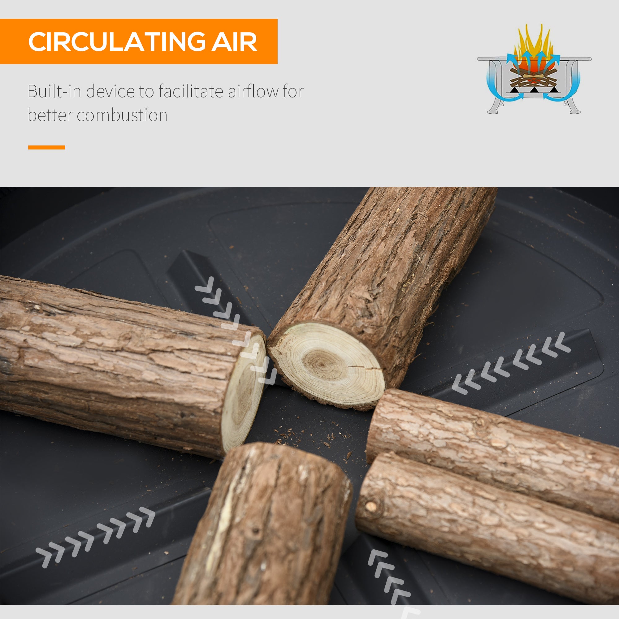 500℃ RESISTANT STEEL: A sturdy structure, which can withstand a high temperature for better use. Four feet, attached to the side make the fire pits for garden balance. COOKING GRATE: A place to hold food and protect you from naked flames.