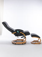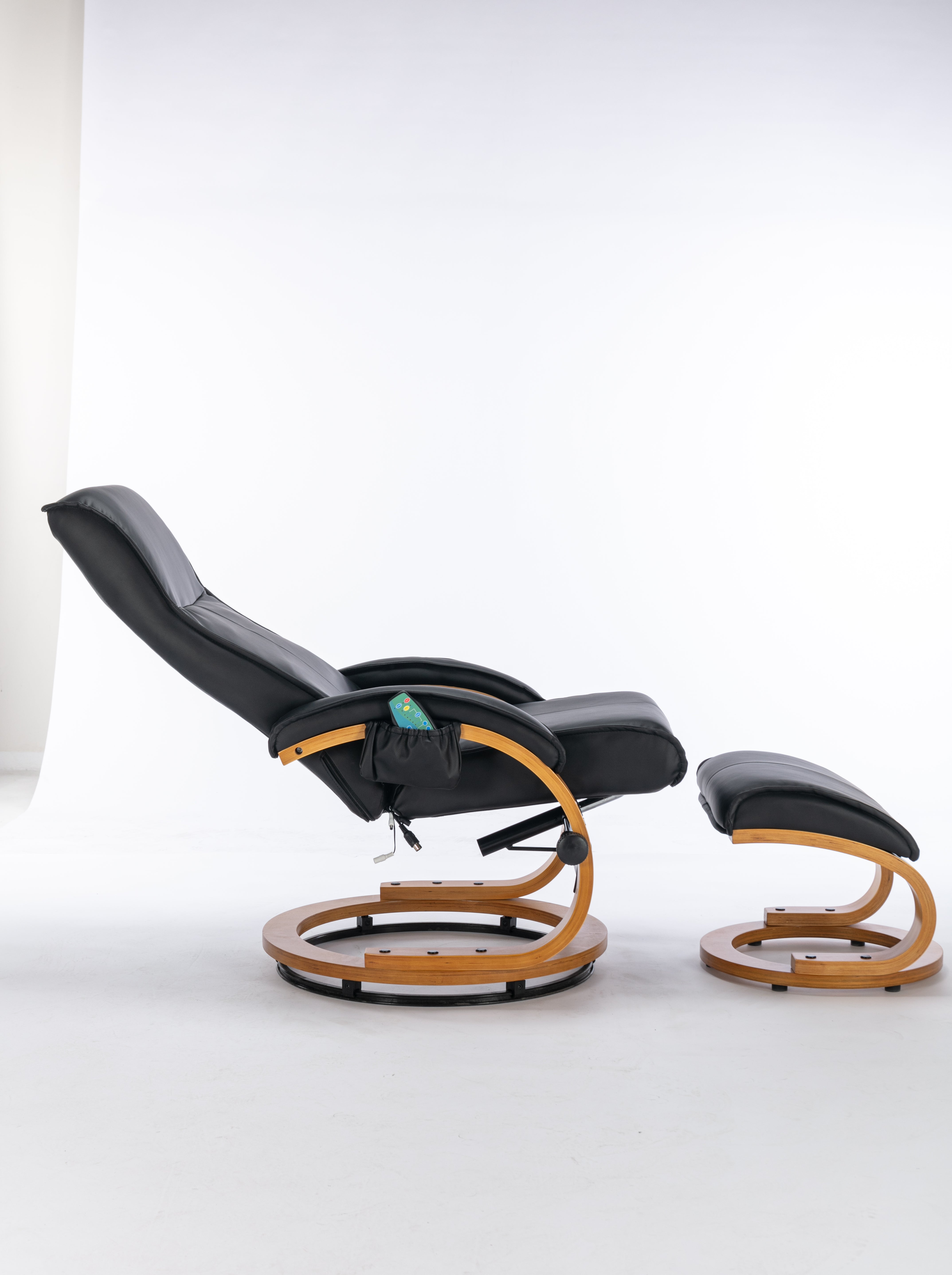 PU Upholstered Massage Recliner with Ottoman, 5 Points Massager, Bentwood Base, Black