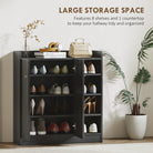 Lots of Storage: This cabinet offers four tiers of open shelving and four tiers of cupboard shelving, capable of storing up to 12 pairs of shoes.