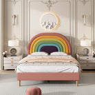 Bring a touch of charm and sophistication to your bedroom with this Velvet Rainbow Headboard Bed. Featuring a classic yet modern upholstered design, this bed effortlessly complements most interior styles while making even smaller rooms feel more open and inviting. The unique rainbow-inspired headboard adds a playful yet elegant focal point, creating a standout piece for your home.