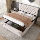 Upholstered Bed (5ft, 150*200) King Size, Luxurious Velvet Button-Tufted Sleigh with Storage, Beige